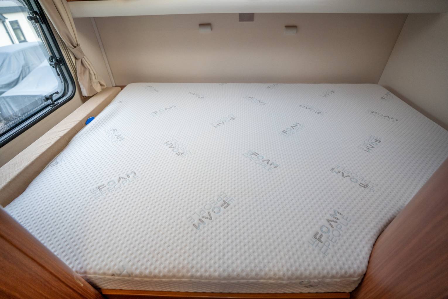 Living Space - The 3 Large Double Beds (Dinette, Overcab & Transverse) can comfortably fit 6 adults, whilst the OverCab bed can be downsized to add more space when you are on the move. The Large fixed rear bed has a bespoke 'Foam People' branded mattress to add that extra layer of comfort and Luxury in your home away from home, whilst the centre dinette transforms to complete the last two beds and mean the whole family can join you.