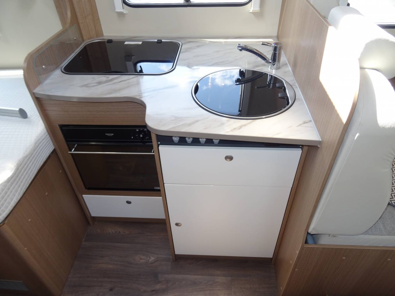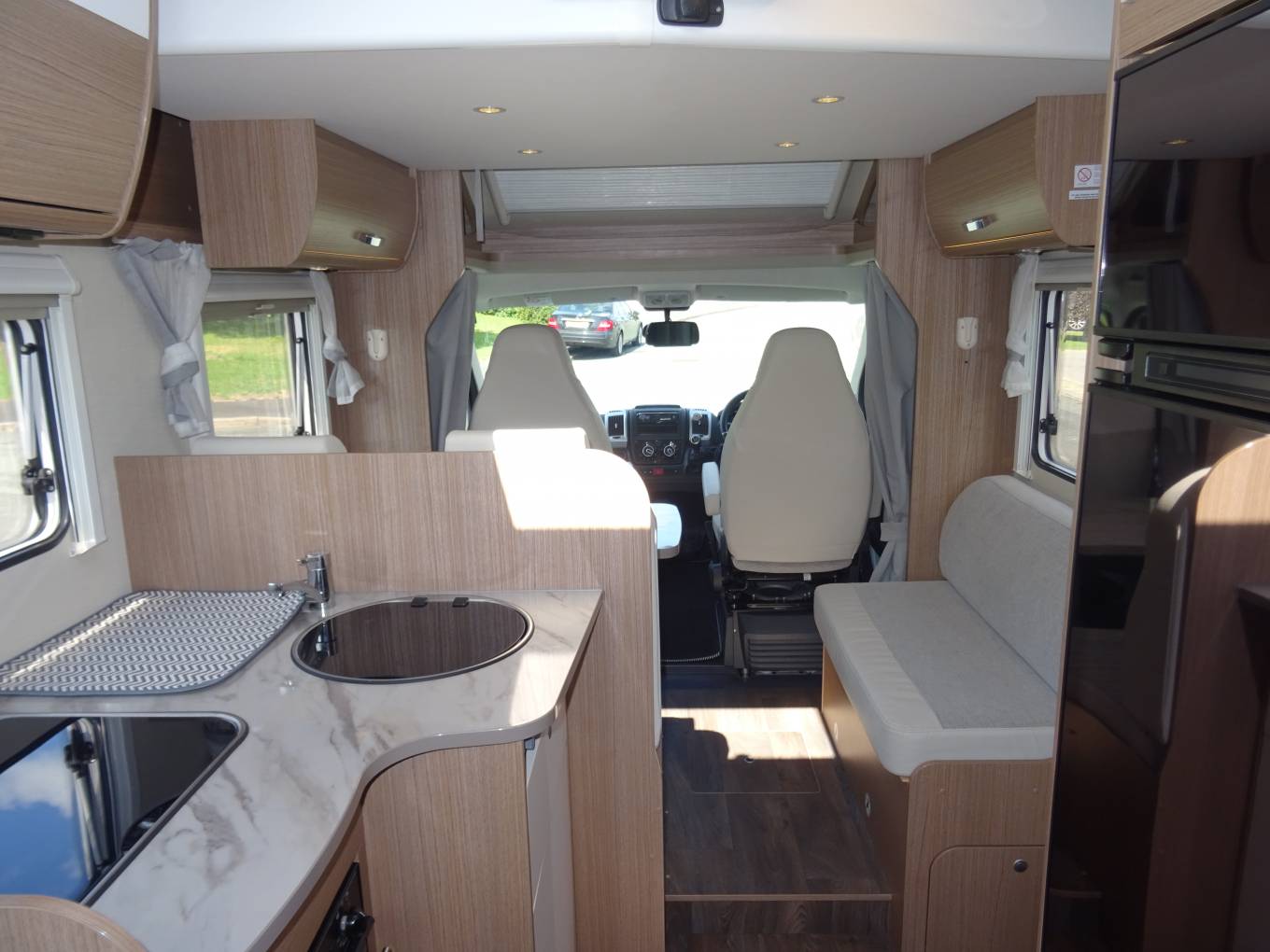 The Carado T348, is a credit to it’s one owner from new. Only 7,000 miles it’s like an ex-demo. This model motorhome known for its practical design and German build quality. It features a fixed rear double bed and an optional drop-down bed over the lounge area, making it a comfortable four-berth vehicle. The T348 boasts a well-equipped kitchen, a spacious lounge with a half-dinette, and a functional washroom with a separate shower.