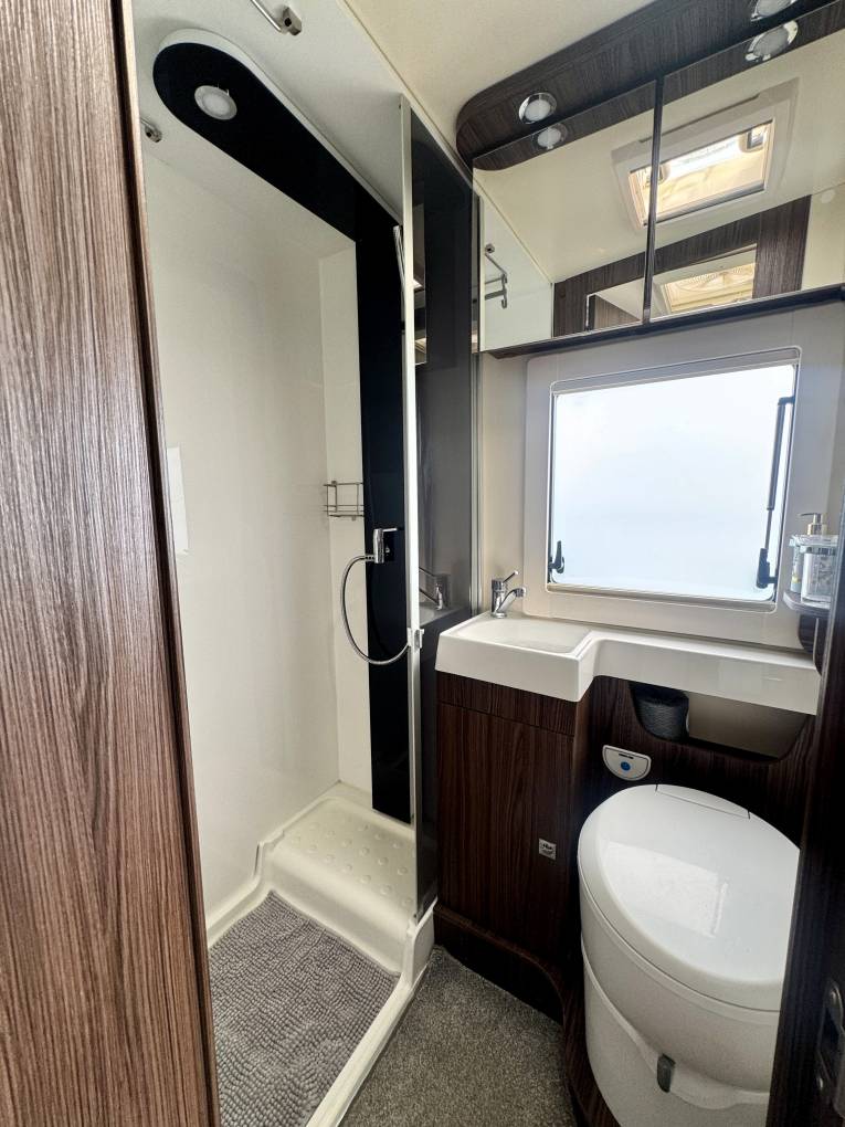 - Full washroom with separate shower cubicle, modern vanity unit with hand basin and a cassette toilet