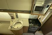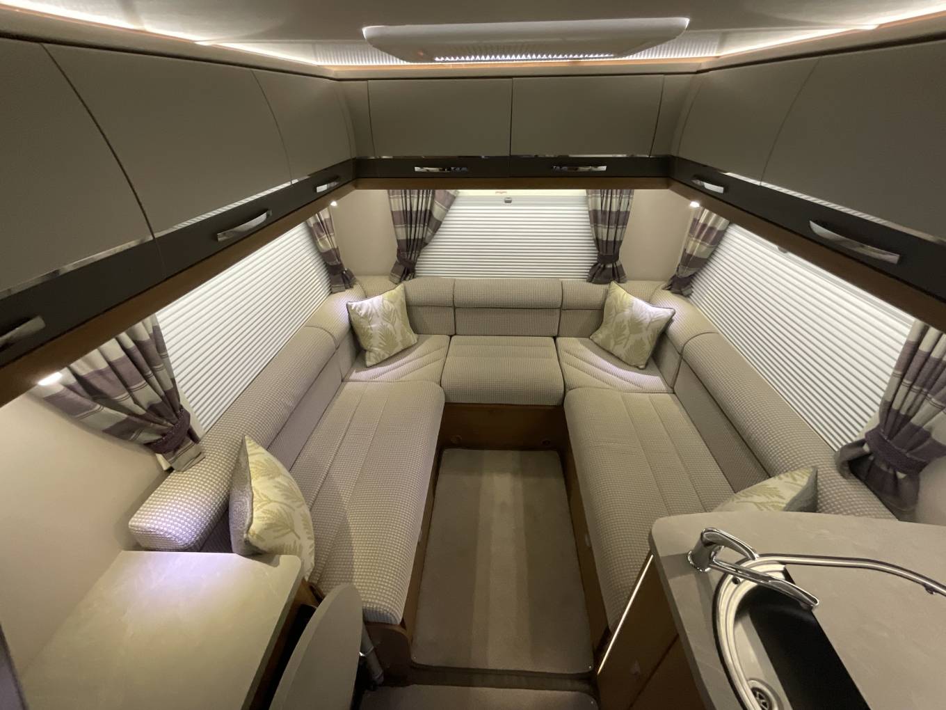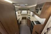 Up front, the swivelling captain’s chairs create a sociable dining area when used with the central table. Quality upholstery, soft-touch furnishings, and tasteful wood finishes give the interior a warm, homely feel.