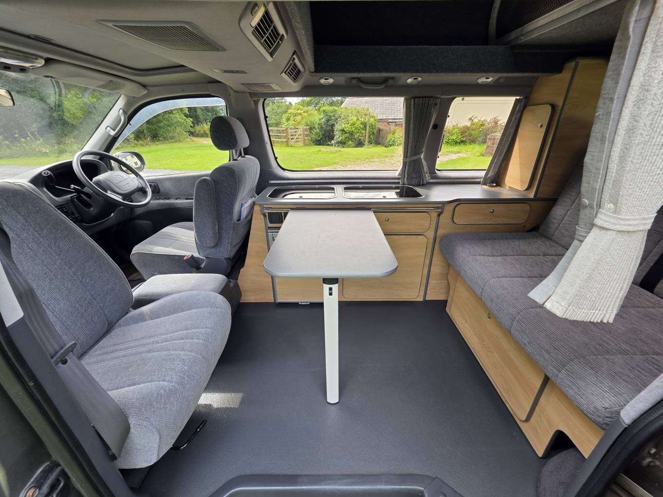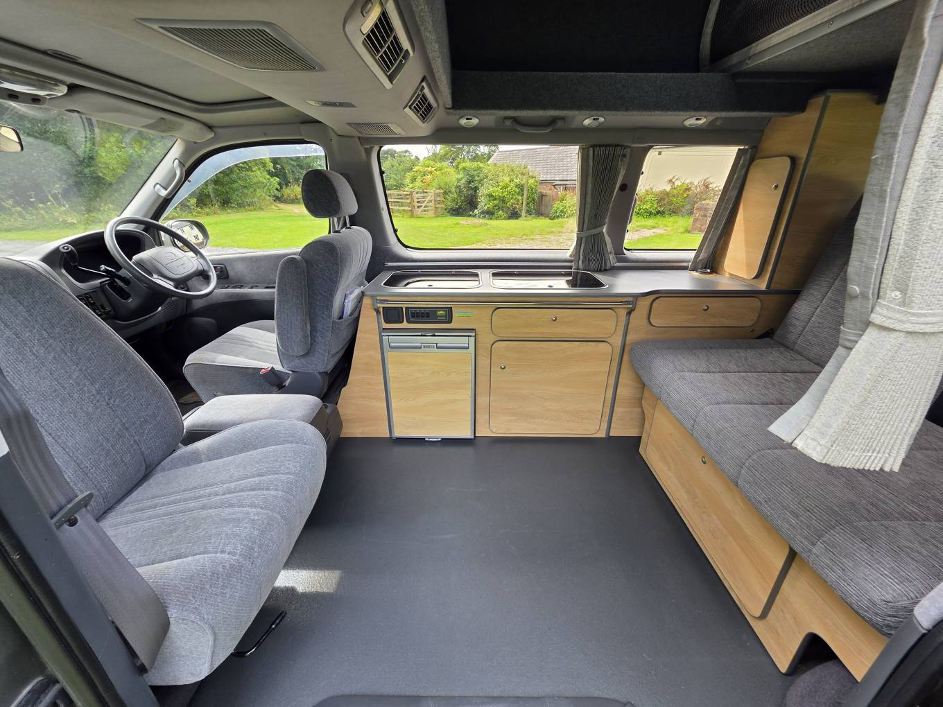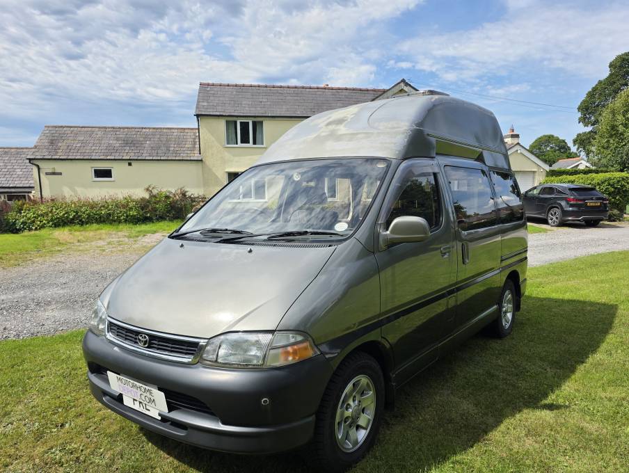 Motorhome Depot are pleased to present this rare Toyota Granvia Professionally Converted by G&P Campervan. Being a rare high top, 4 berth 4 belt Automatic camper it will tick a lot of boxes. With low mileage of under 92,000 miles and a 3.0 litre engine. This was imported in 2013 and has been owner by the same owner since 2013 who bought this from the conversion company. It’s been regularly serviced and is ready for its next owner to make more memories in it.