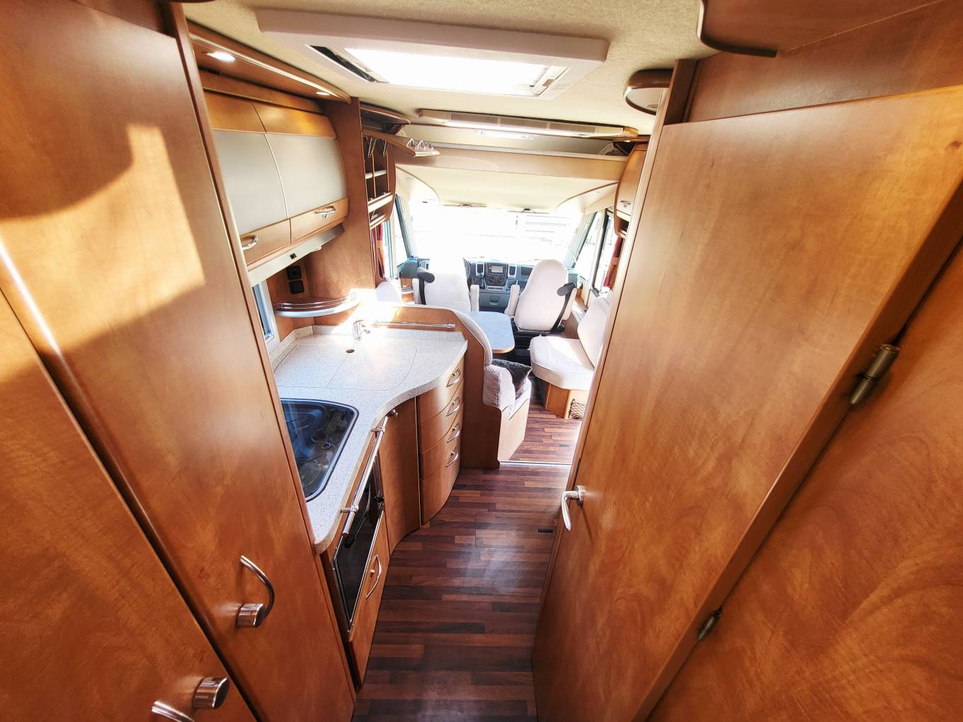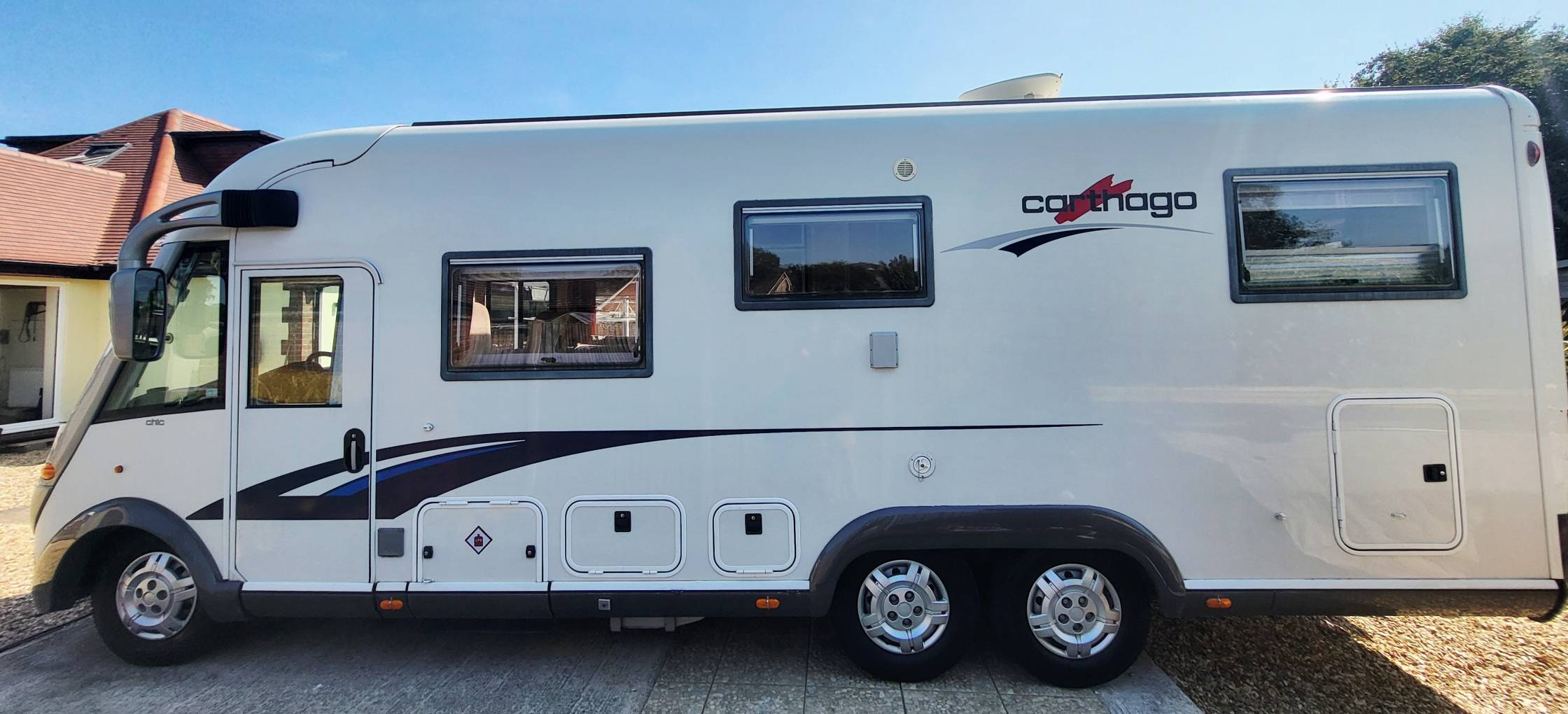 In its day, this was the top of the range motorhome from Carthago. This particular model is prepared for European journeys with the 3 Litre Fiat Ducato 6 speed gearbox tag axle and 5000kgs weight limit. It is also left hand drive, meaning that you will immediately feel at home on the European highways.