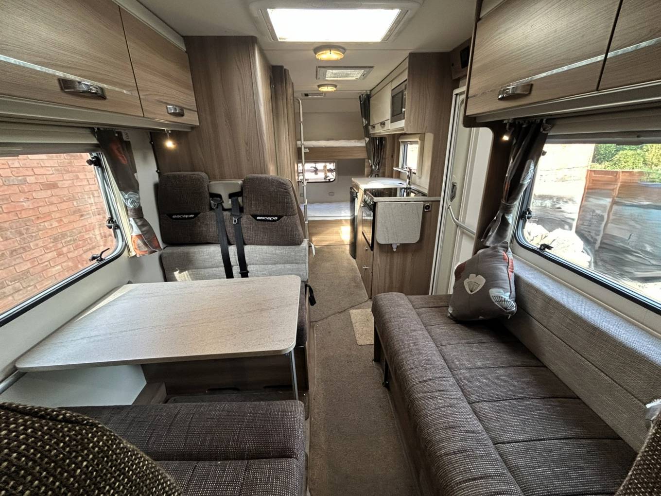 - Front lounge with spacious dinette which can comfortably seat six, incorporates the 3 additional travelling seats and converts to a sizeable double bed