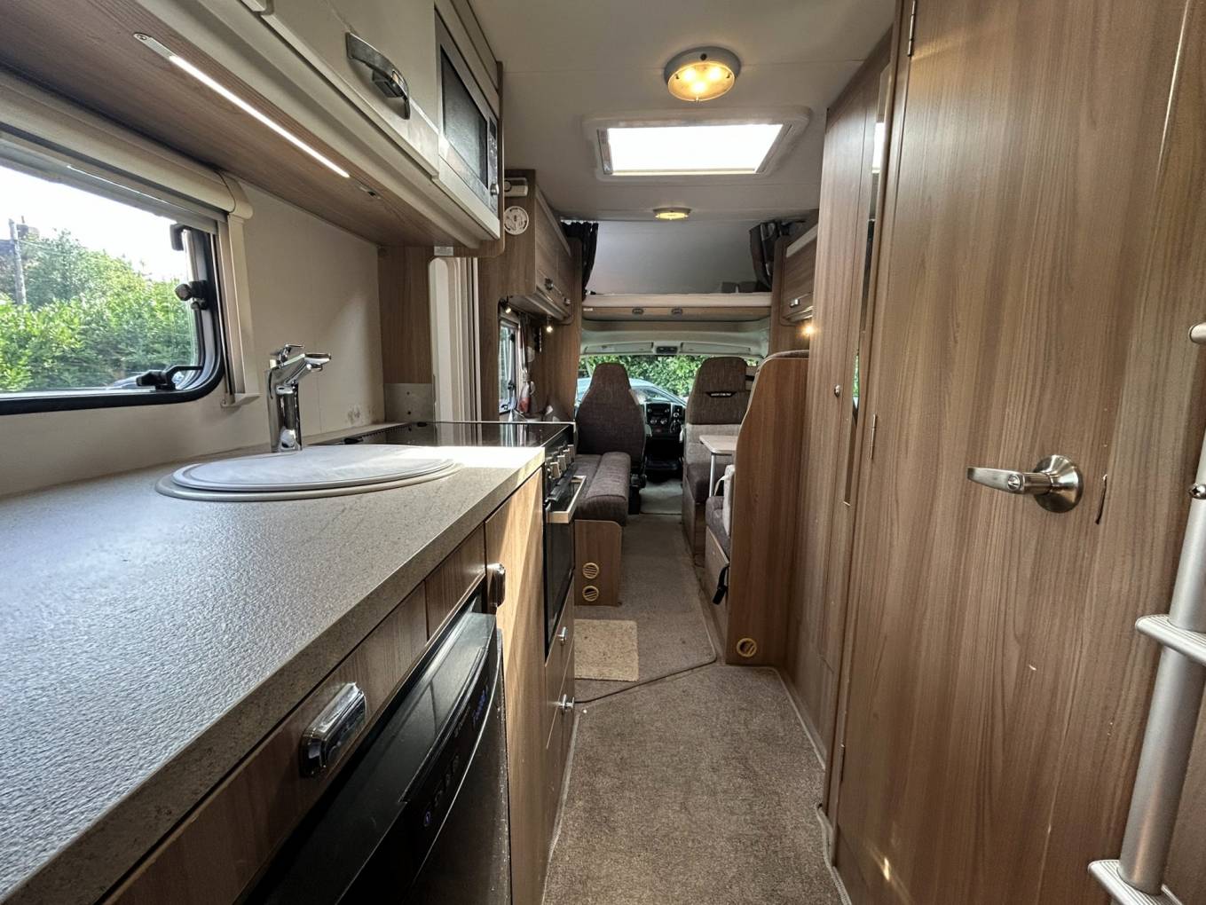 This motorhome is based on the Fiat 2287cc engine with 130bhp and a 6-speed manual gearbox and comes with full habitation and service history and is chain driven. The MOT is valid until June 2026 with no advisories.