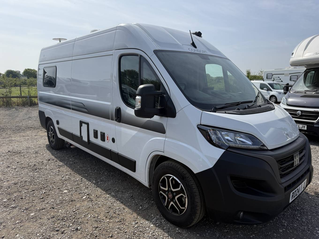 Stunning Conversion From Consort in Leeds This 2500 mile 2024 Reef has the 9 speed auto gearbox , rear lounge layout and £6500 of extras on the Base version with Truma electric and diesel heating, just arrived into stock yesterday and is available to view by appointment at our new premises near Wentbridge Pontefract WF8 3EQ.