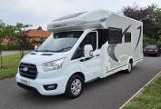 Built on the Ford Transit 1995cc engine with automatic transmission, this 6-berth, 4-seatbelt motorhome offers a versatile family-friendly layout. At the rear are fixed single bunk beds with a second electric drop-down single above the lower bunk. The front lounge features an electric drop-down double bed, and the dinette converts to a second double bed.