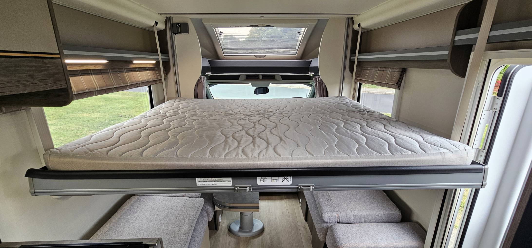The Chausson 720 offers a well-planned layout with multiple sleeping arrangements, ample storage, and falls in at 3500kg so can be driven on a Standard UK License.