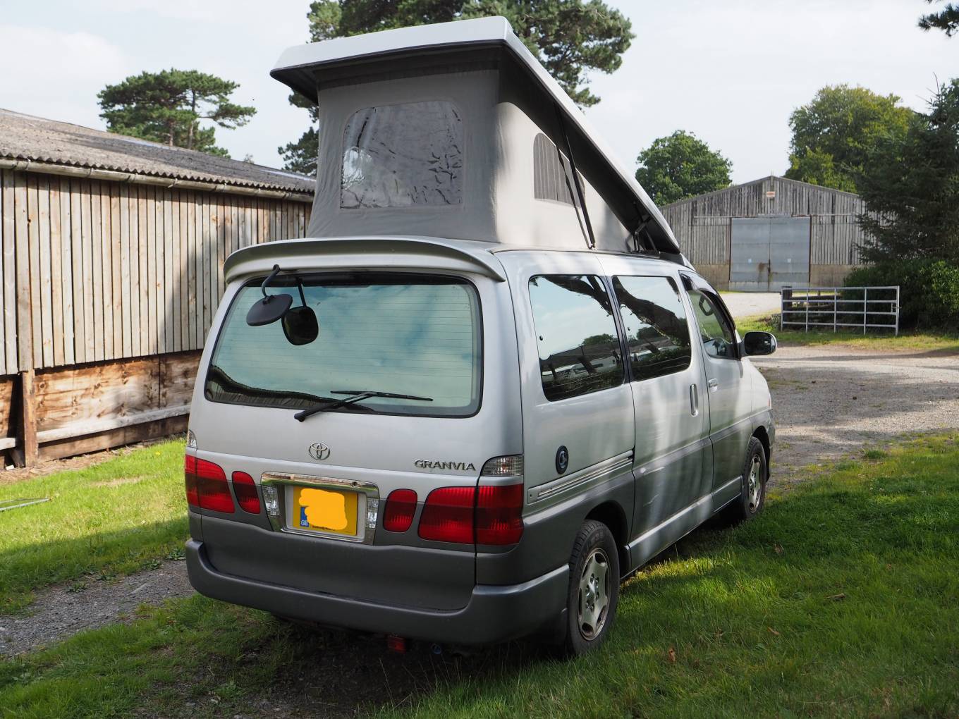 Motorhome Depot Wrexham & Gwynedd are pleased to offer this nicely converted Toyota Granvia import. Built in 2001 the Granvia was imported into the UK in 2015 and underwent a camper conversion including the addition of a poptop roof. The Granvia is a popular and reliable people carrier and at under 2000Kg and only 4.7m long makes for a great camper conversion providing a great utility vehicle that can be a daily driver, day van or as a get away from it all camper. Has 4 travel belts anbd a rock n roll bed and comes with an awning that could provide additional sleeping space for a family. Ideal for an adventurous single or couple but would serve a family of 4 well too. A great and affordable day van for a fisherman, cyclist, walker/hiker....