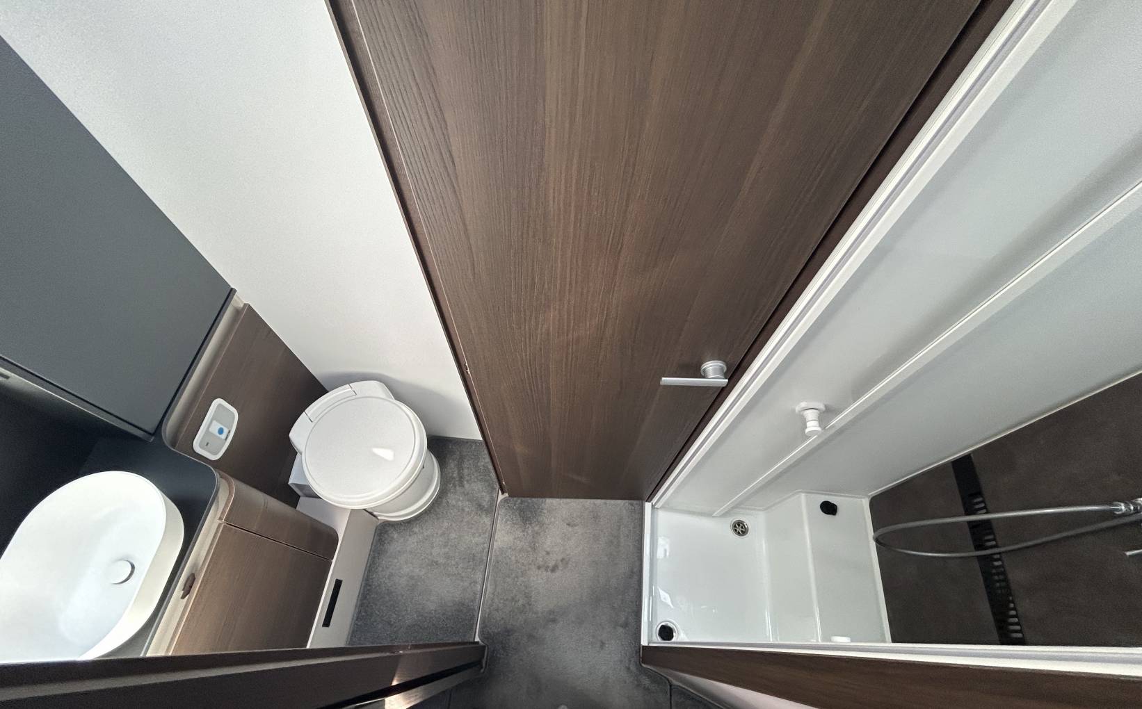 Sleeping in the Adria is fantastic with an extremely comfortable Island Bed at the rear giving you the perfect nights sleep. There is also another electric double above the lounge area. This motorhome comes with a central washroom with Thetford flush cassette toilet and sink on one side and a separate shower on the other. Heating and hot water are provided by the Alde heating system.