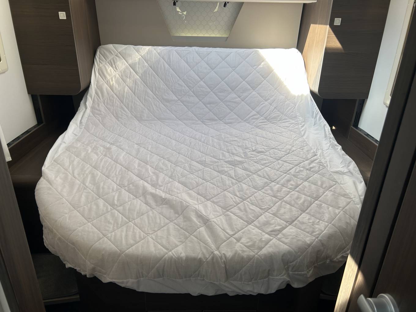 This Adria is built on the Fiat Ducato chassis and has the 9 speed automatic gearbox. It has a powerful 2.3 litre engine with 160 BHP, giving you all the power you need making it an absolute joy to drive. It comes with cab air conditioning, cruise control and a media system that has Sat Nav, Bluetooth connection, DAB radio and reversing camera.