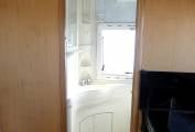 This Auto Sleeper has been loved by it owners, the interior is in very good condition for it's age, there is know fading on the fabric and the carpets has plastic overing on it.
