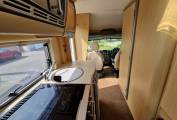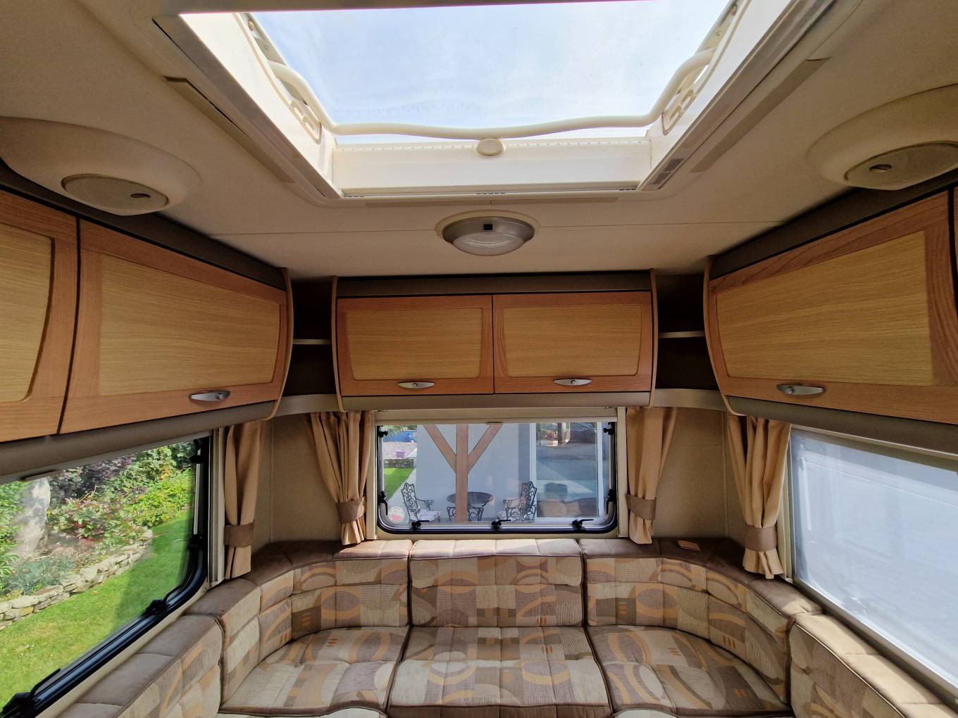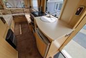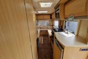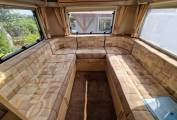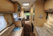 The E460 comes with the sought-after 2 rear lounge 2-berth layout and with panoramic windows and a large skylight, you can enjoy the outside from the comfort within, whatever the weather. There is a separate foldaway table which can be used when entertaining, this is stowed away in the wardrobe. At night the lounge quickly converts into a large double bed or can be used as two singles instead.