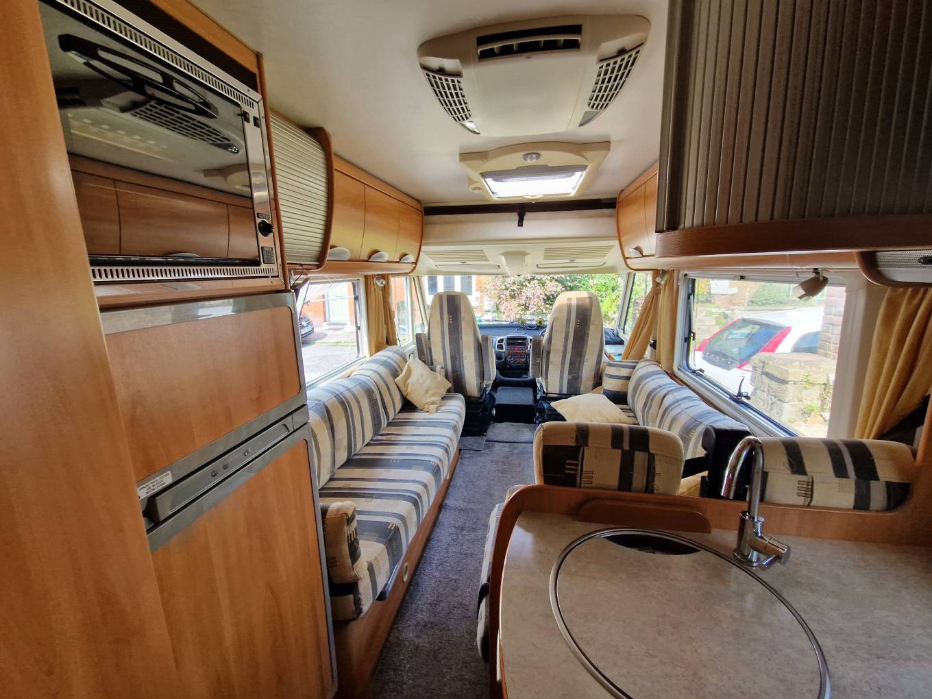The integrated cab and fabulous views whilst driving is part of the pleasure of owning an A-class and this 2.8L Fiat Ducato is fitted with Cab air-conditioning, reversing camera and cab blinds for your convenience. The stereo has been upgraded and there is a sub-woofer in the van for those who like their music.The security has been beefed up with a Sigma alarm and Phantom tracker.