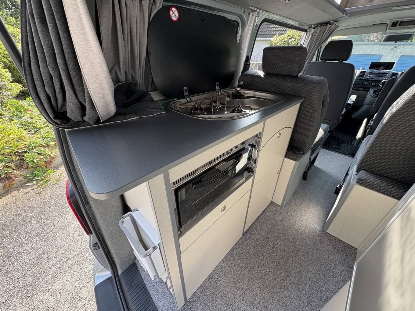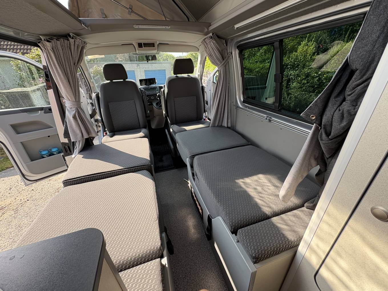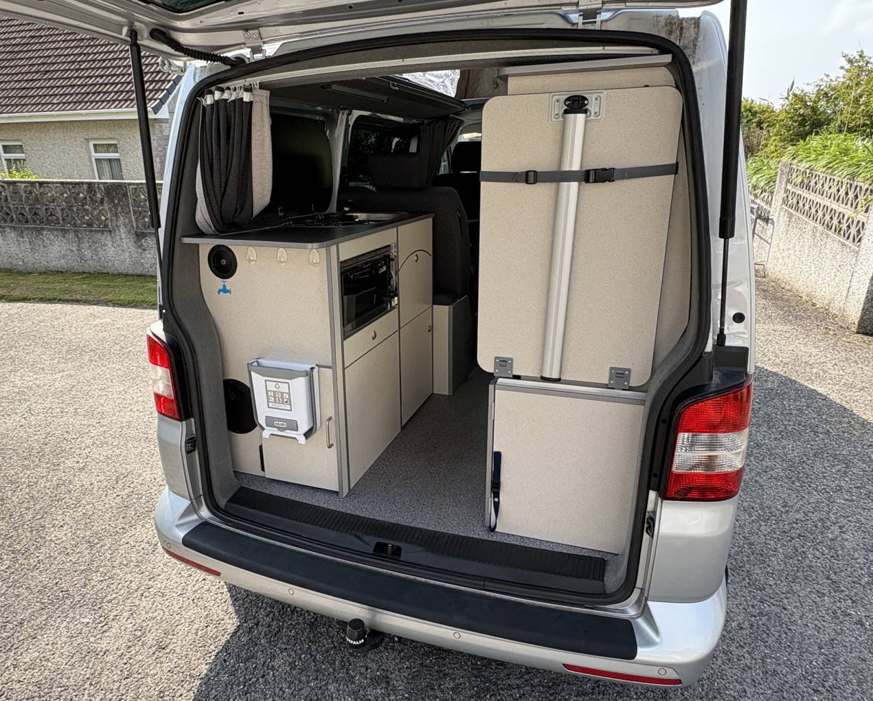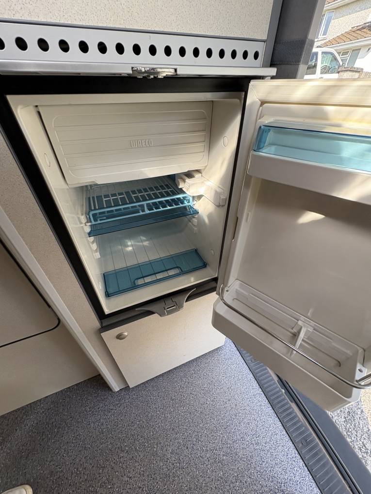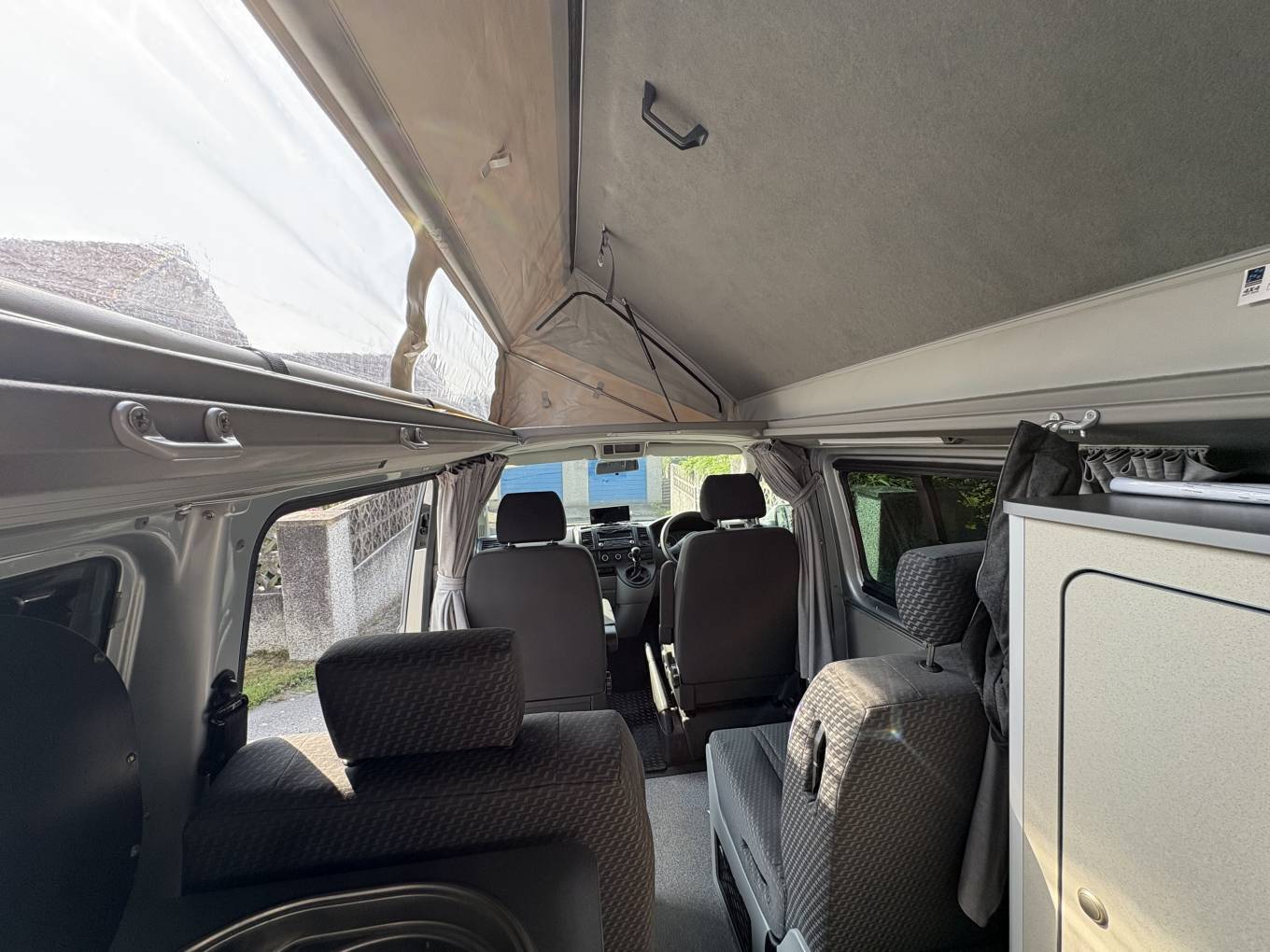 This camper has the rare 2 single beds that measure 1.83 metres in length and you benefit from plenty of storage lockers including under the rear seats and a wardrobe space which also includes a small vanity mirror which is a lovely touch.