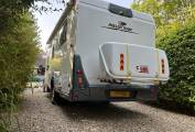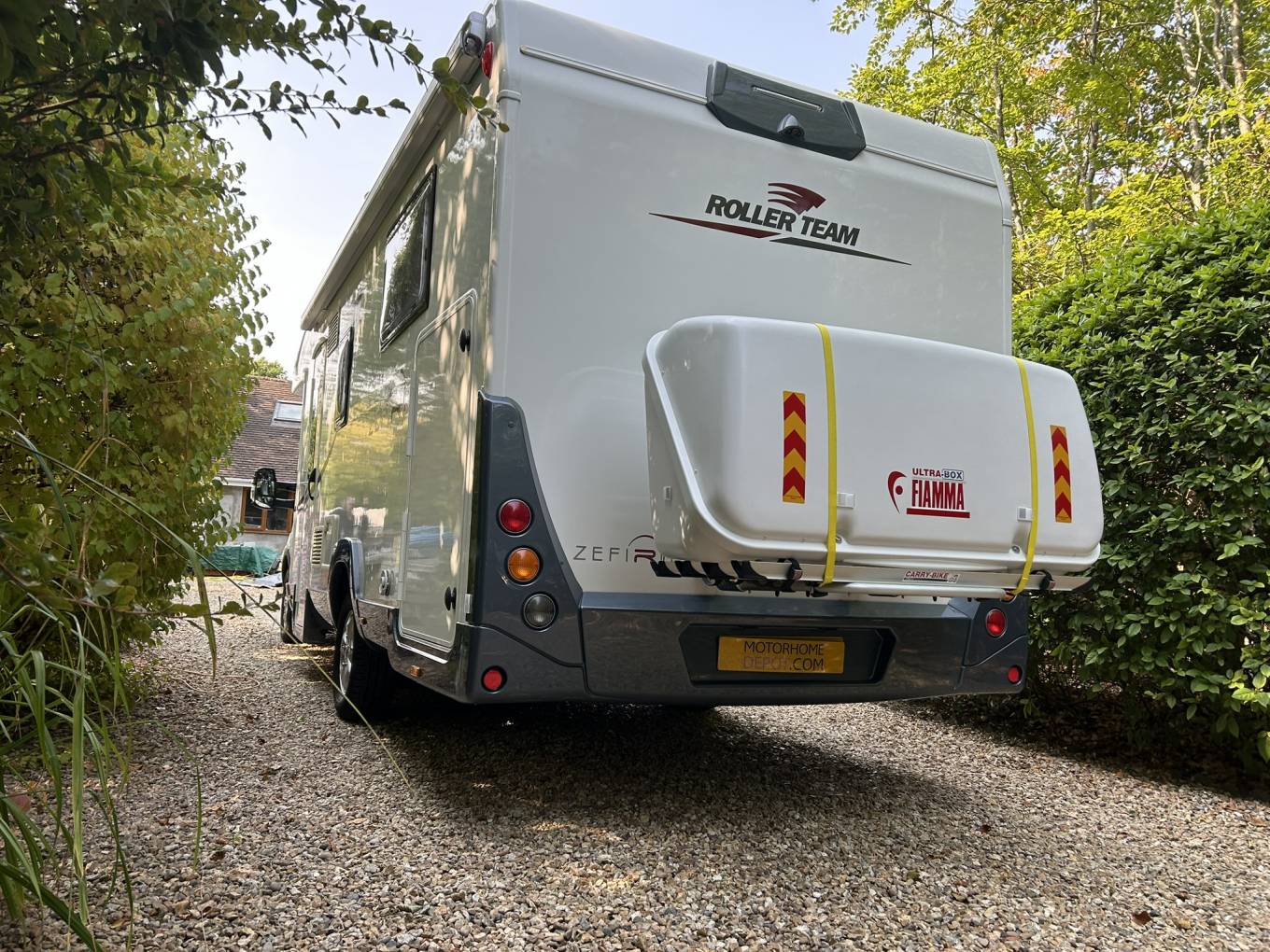 Outside the van is a large garage, wind out canopy, alloy wheels, solar panel, bike rack, gas bottle locker and TV aerial.