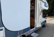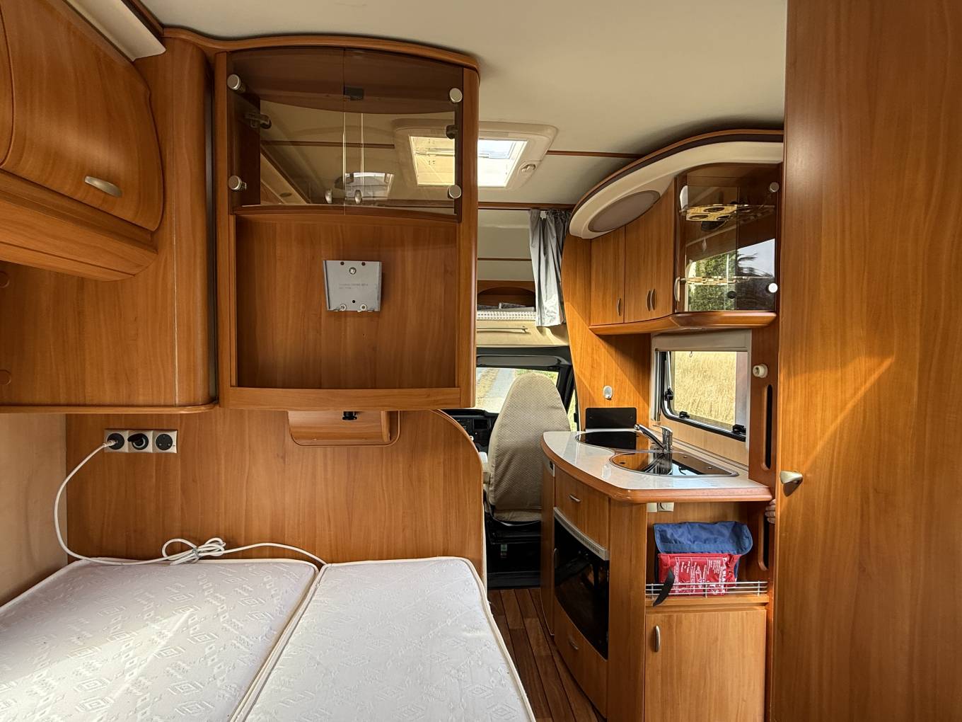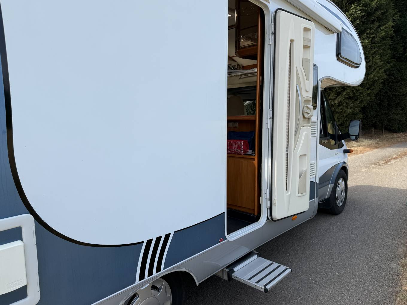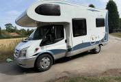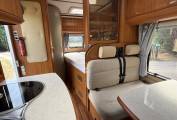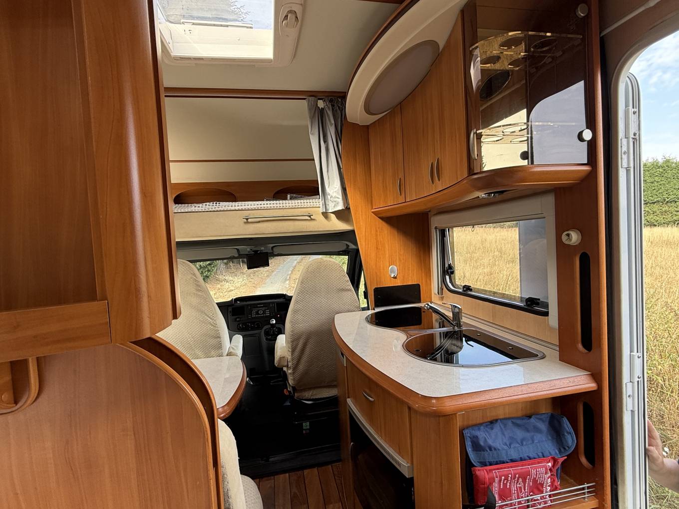 HOBBY SIEATA 555 with 4 travelling seats and generous accommodation. The 555 has a French bed to the rear of the motorhome with a washroom to the side, a mid dinette with ample space to dine 5 guests, a side kitchen complete with fridge freezer, sink and oven, and large overcab double bed. The Ford cab is comfortable and fitted with air conditioning. Externally there ia a large wind out awning and substantial tow bar. Good sized accommodation with 4 travelling seats, 2 double beds and a comfortable loung/dining area. Just completed full habitation inspection, please ask for a copy. New MOT to August 2026.