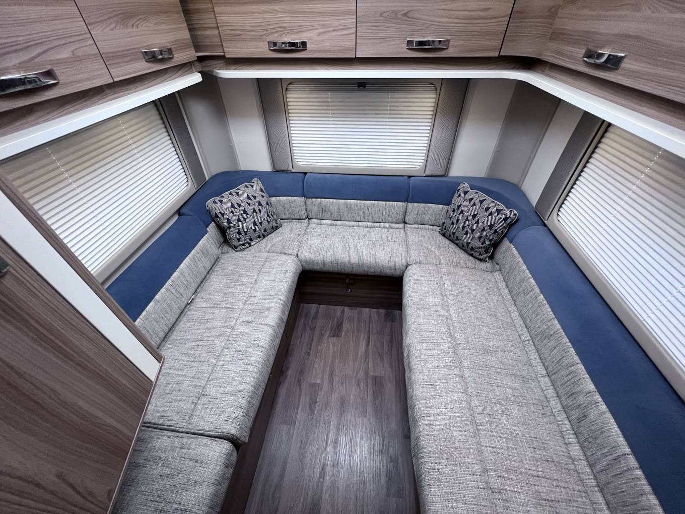 Onto the Rear U shaped Lounge where a removable dining table sits in the centre and the whole area converts to a Huge Double Bed or Twin Singles.
