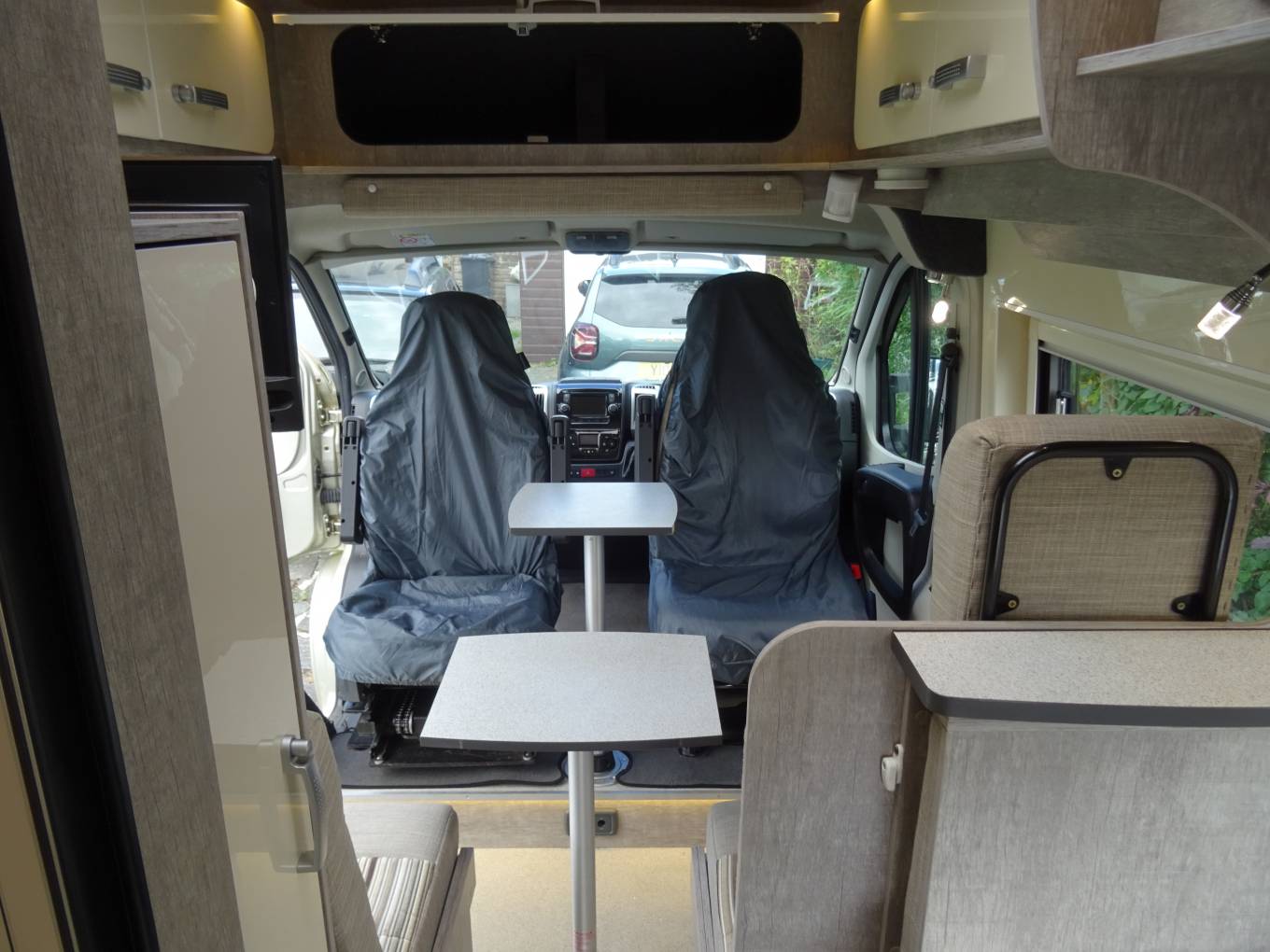 Ingenious compact design including a fully equipped kitchen and bathroom, 2 berths and 4 travels seats.