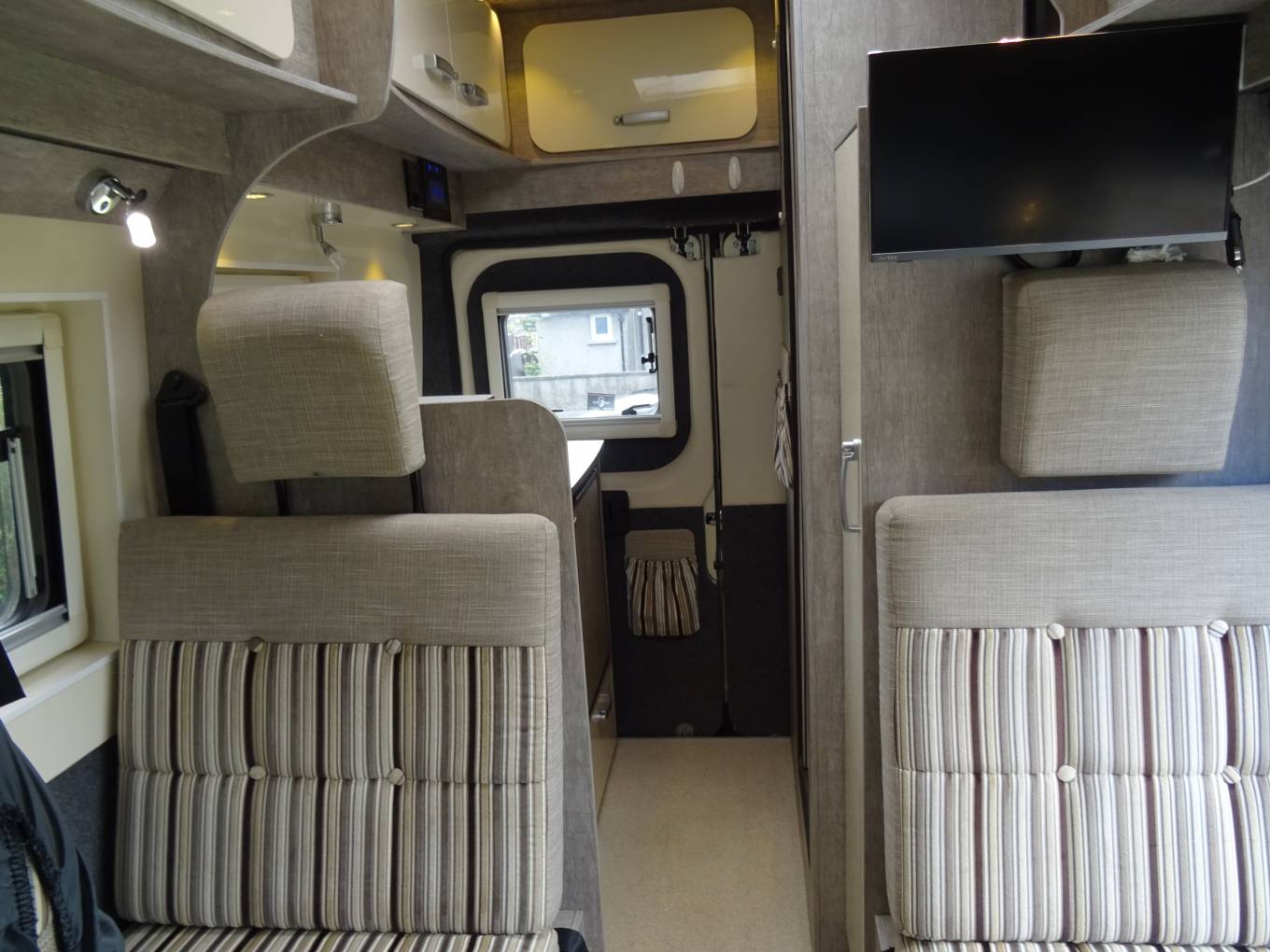 At night, the lounge converts easily into a comfortable double bed. All windows and skylights have blinds/fly screens and the cab is fitted with Remis window blinds. Lighting is excellent with inset downlighters and touch sensor task/reading lights and a USB charging point. It comes with Duel Fuel heating and hot water, fresh and grey water storage tanks, underslung LPG tank and 2 leisure batteries.