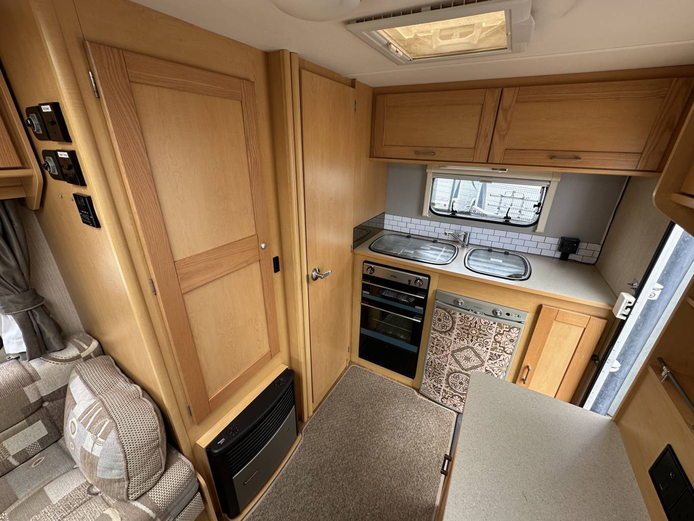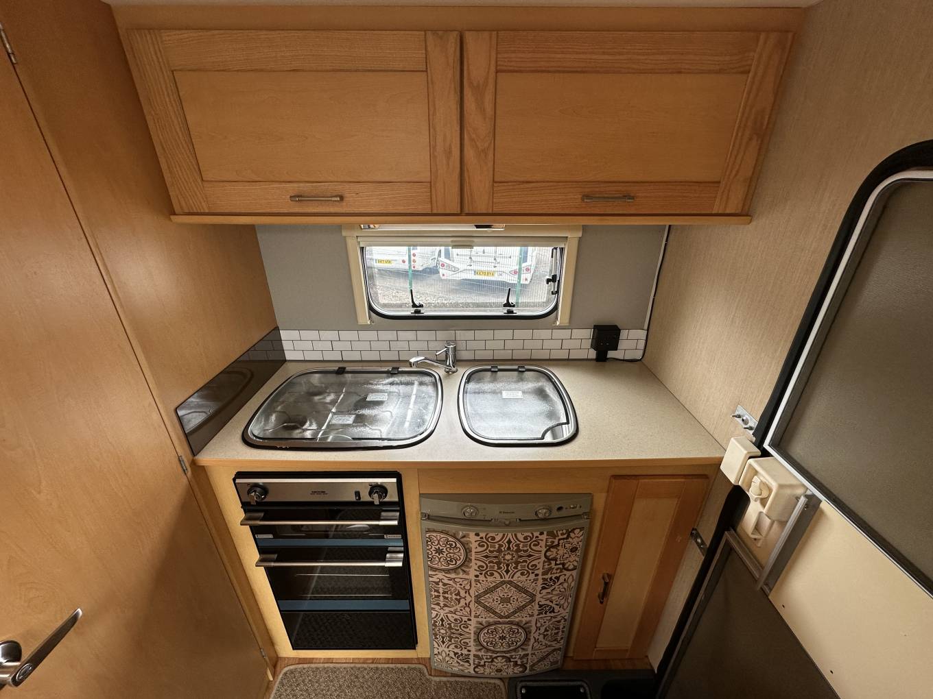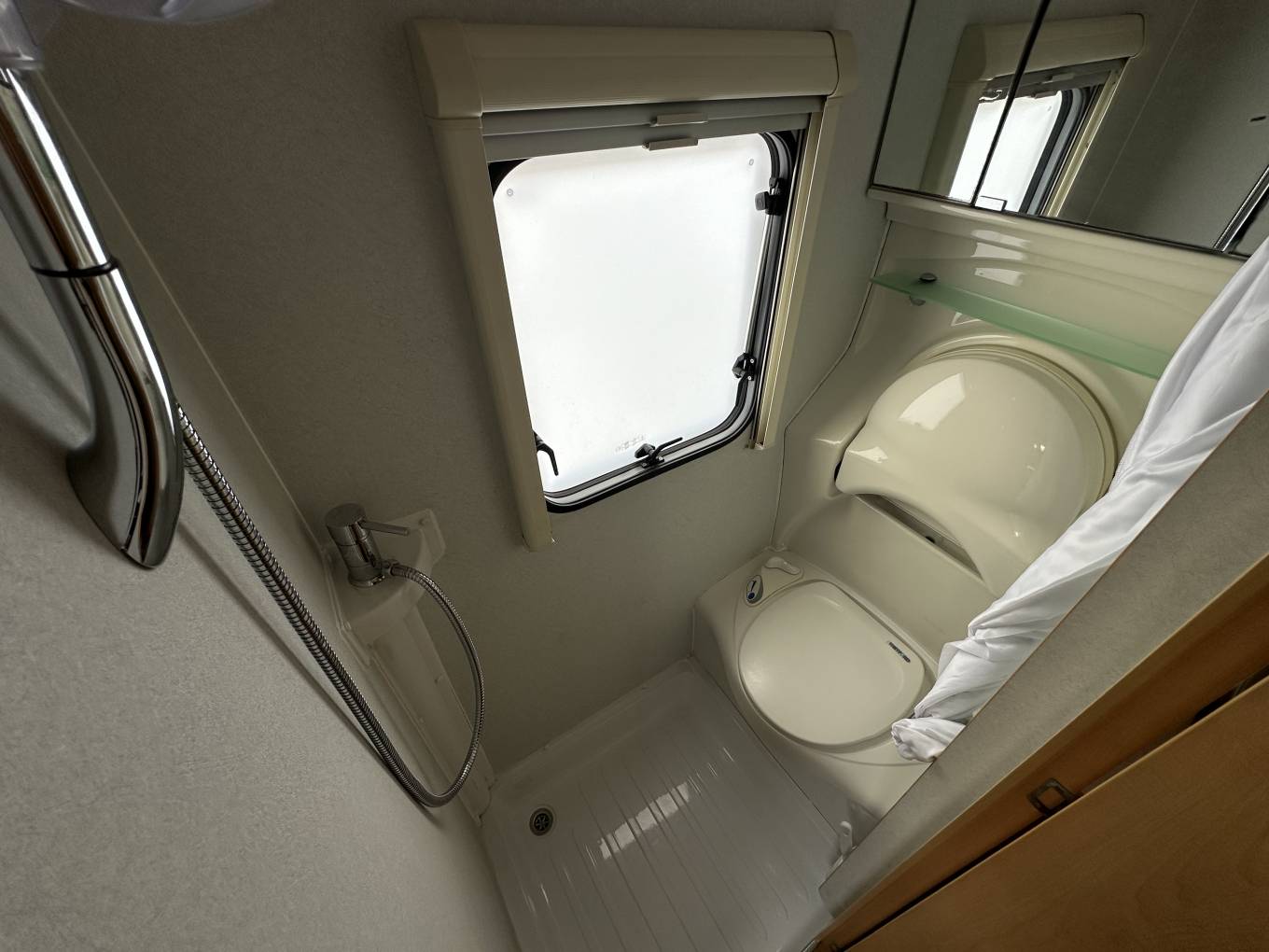 At the rear, you have the well equipped End Kitchen (BARELY USED) that is next the habitation door to give you extra ventilation when cooking up a hearty meal for any occasion and comes with 3 gas hobs, fridge with freezer space, hot and cold water mixer tap, a separate grill and separate oven that has yet to be used. Also at the rear you have the washroom that is nice and compact and offers you everything you need to refresh after a day of adventure and comes with the Thetford toilet, sink with hot and cold water, shower, vanity mirror and storage locker.