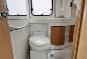 Opposite the kitchen area is a good sized hanging wardrobe and a Trumatic gas heater, next to this is the shower room with electric flush toilet, vanity sink with storage below and twin mirrors.