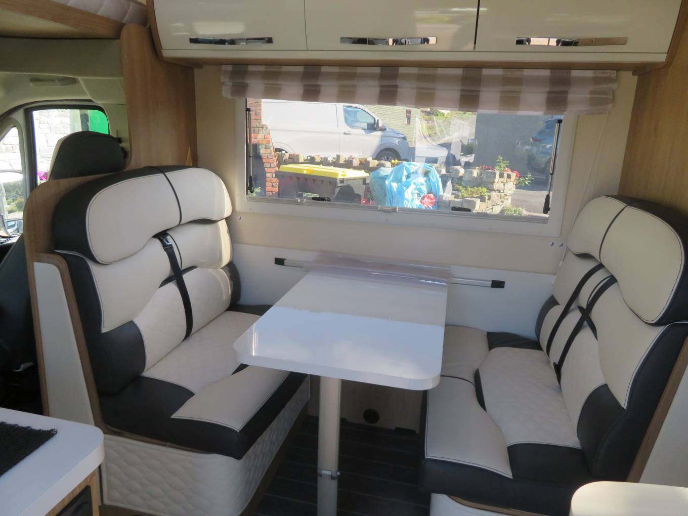 The Motorhome is exceptionally spacious but can be driven on a normal car licence. The Cab benefits from A/C, Cruise Control, XZent Multi media centre which has a built in Reversing Camera and Sat Nav .The main feature of this motorhome would be it’s rear U-shape lounge which converts into a 2 large bed with minimal effort, and it’s large over-cab bed that can accommodate 2 other guests and finally the dinette can be converted to a small double berth if required. Moving into the motorhome via it’s habitation door, you are greeted with a central dinette, spacious kitchen with sink and mixer tap, x3 gas hobs and a fridge with internal freezer. Adjacent to the kitchen there is a washroom with mixer tap, vanity mirrors, hand-wash basin, separate shower room and a toilet cassette. Further to the rear of the motorhome there is a spacious U-shape lounge with a great deal of storage underneath that can also be accessed from the outside.
