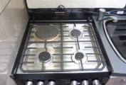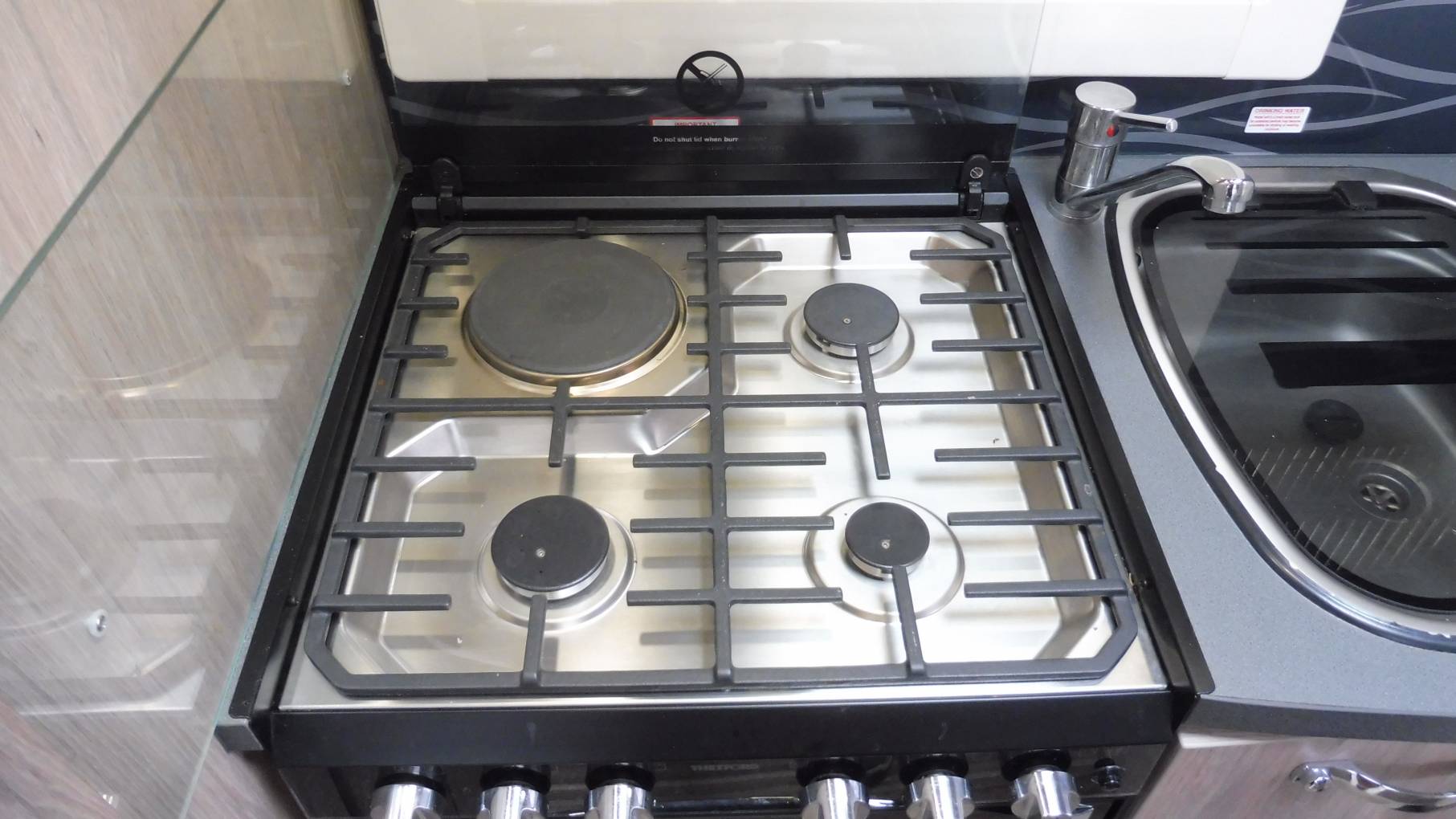Entering at the rear you have the end kitchen which is very well-equipped with a large oven, separate grill, cooker hood, four burner hob (3 gas 1 electric), sink with mixer tap, microwave, three-way fridge with icebox and good storage space from both base cupboards and roof lockers.