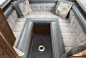 Internally above, is the rear U shape lounge, which also can be used as 2 single beds and a double. There is plenty of storage here, plus Avtex TV with satellite decoder