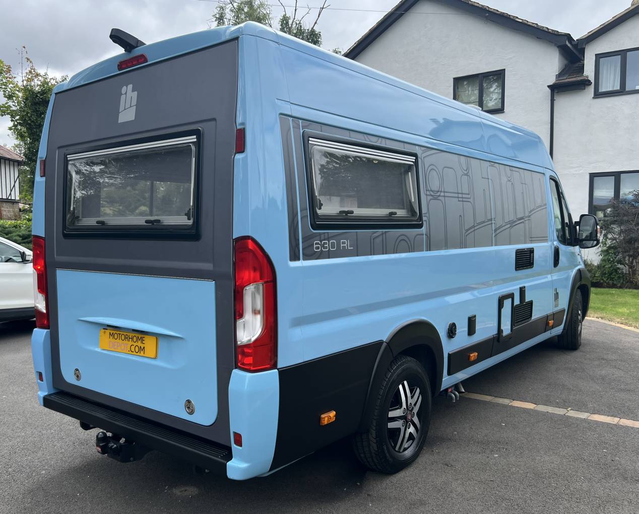 This 2021, IH 630RL, is a 2 berth, campervan, with only 9091 miles travelled. It is distinctive in Azul Blue, 1 owner from new, this 160bhp vehicle has £12k extras fitted over standard manufacturer specification and is 6.36m long.