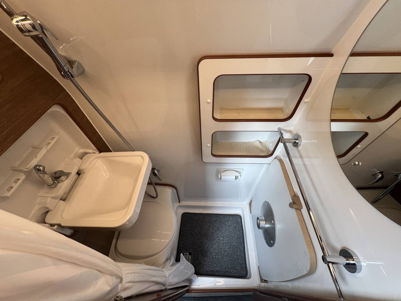 In the washroom, you will find a toilet, pull down sink and shower attachment