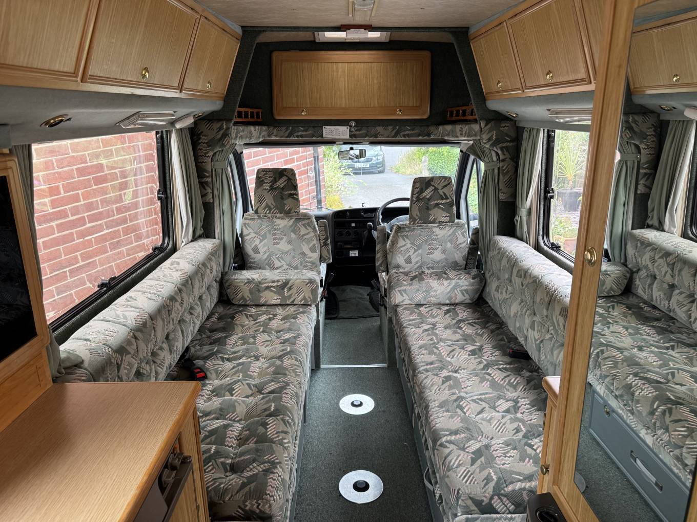 Moving forward there are 2 generous bench seats that can be used as 2 comfortable single beds or they can easily be pulled out to create a large double bed and this area has two tables which are removable for dining or relaxing around. There is excellent storage throughout in the overhead locker spaces and wardrobe and fantastic full panoramic windows on both sides of the main habitation area.