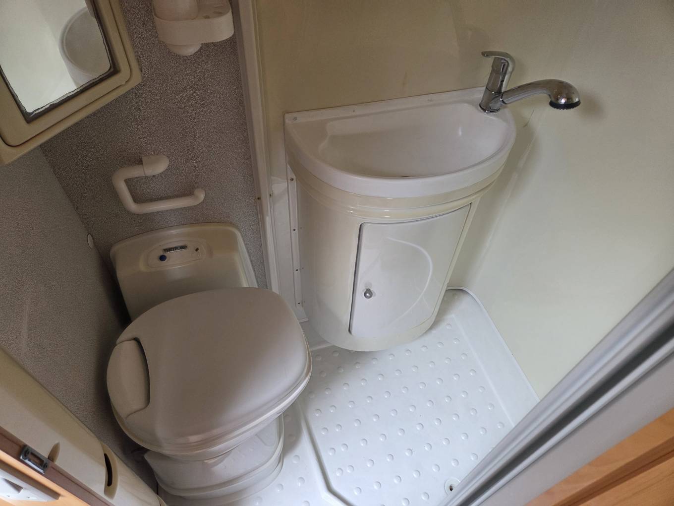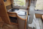 The cab area has cab air conditioning, radio/cd player, central locking, electric mirrors and windows and a reversing camera. The dining area has 2 more travelling seat belts and the captain's chairs swivel round to join the lounge. Your bathroom has a shower, wash hand basin and a cassette toilet. Kitchen area is spacious and is equipped with a 3 way fridge freezer, 3 burner gas hob, oven, grill and sink.