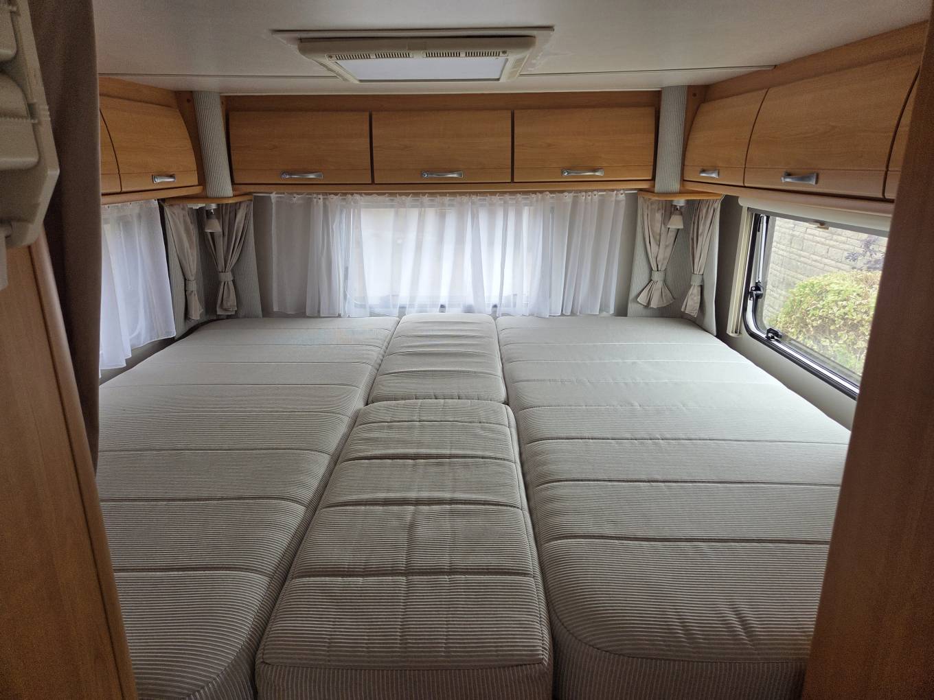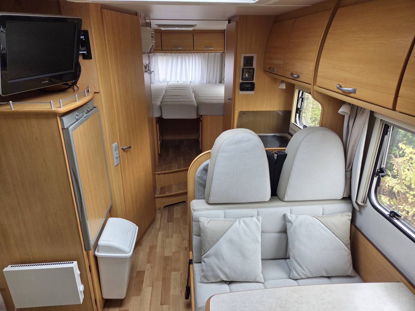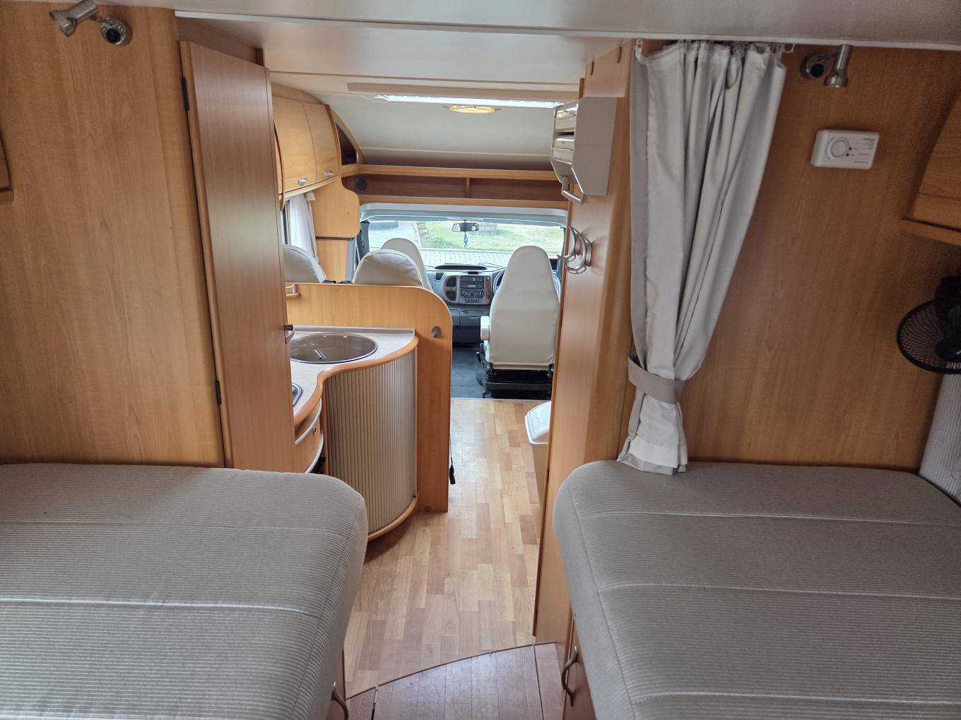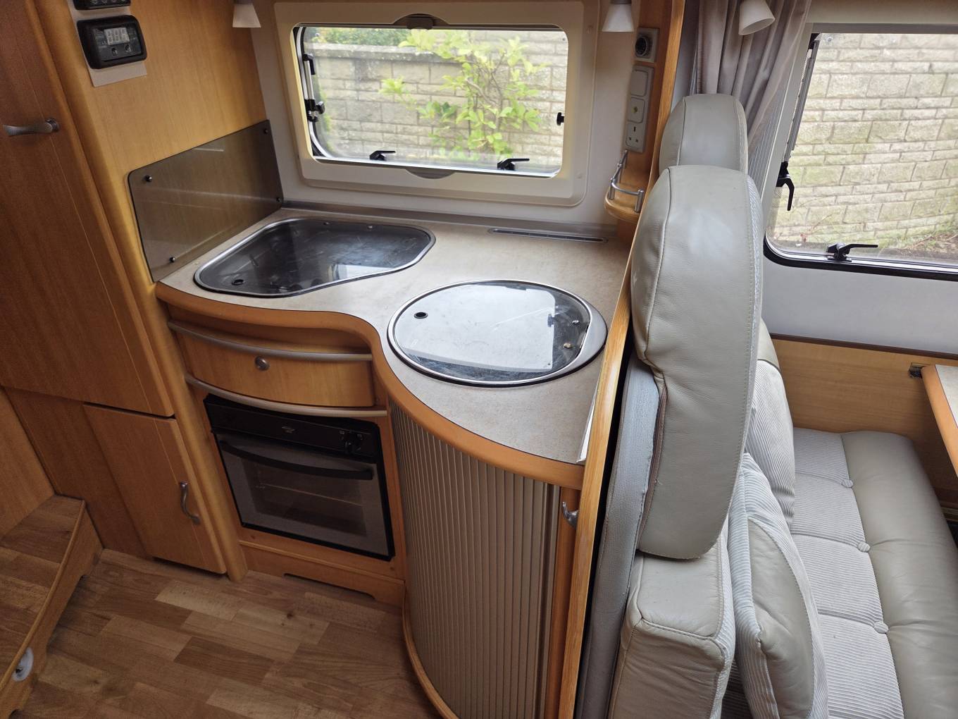 The bedroom can be left as 2 fixed single beds or made up into a large double. The large garage has excellent storage for all your travel items. There is plenty of storage throughout the habitation area. Additional items include a Fiamma F45 awning, solar panel and rear air suspension.