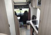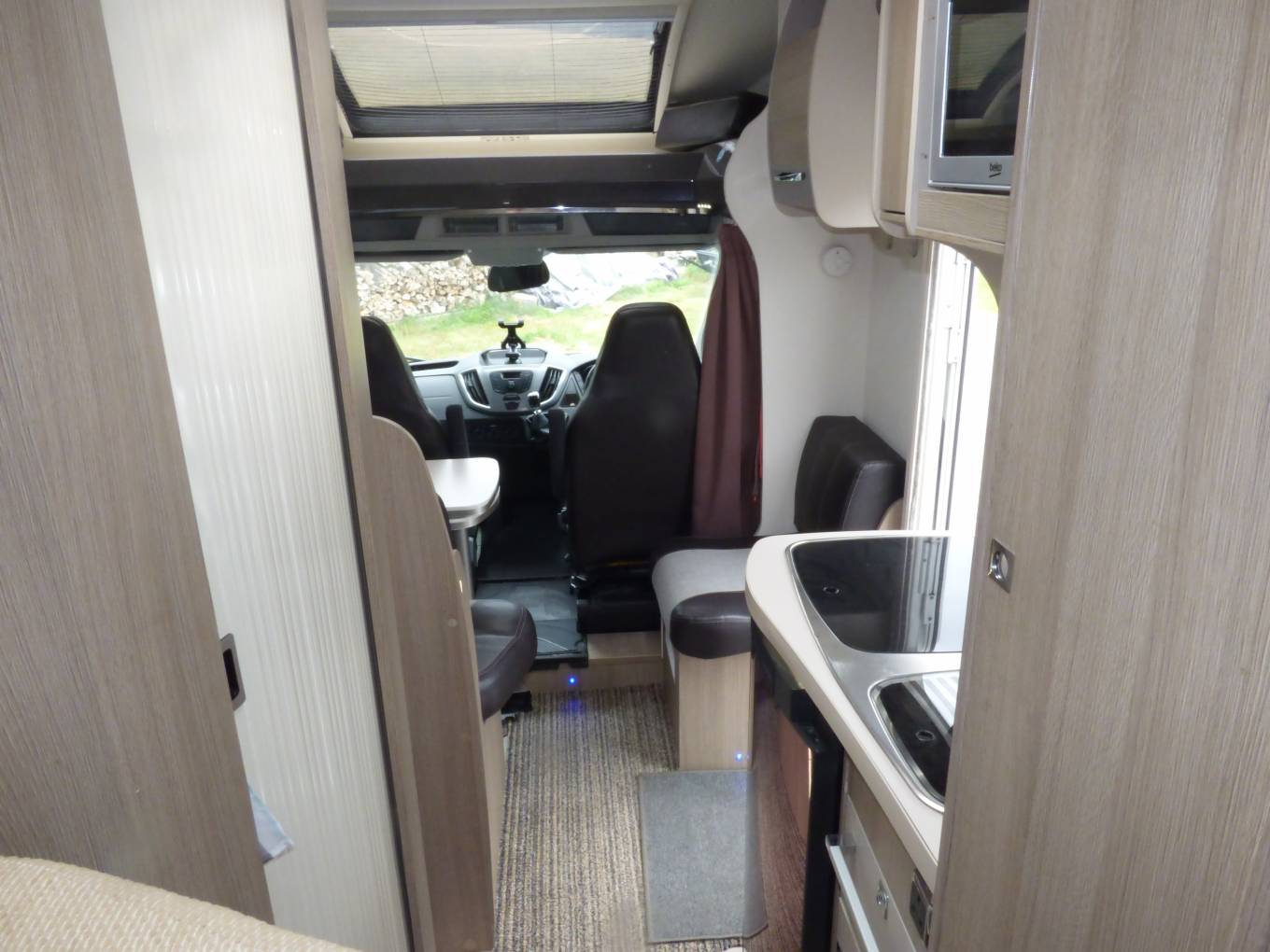 The 514 model is very popular as it is compact in size at 5.99m in length and can be driven on a normal driving licence at 3500kg. It has a 2.0 litre Ford engine, solar panel ,reversing camera, bike rack, cruise control and tow bar. One particular feature is the massive garage accessed from either side of the vehicle.