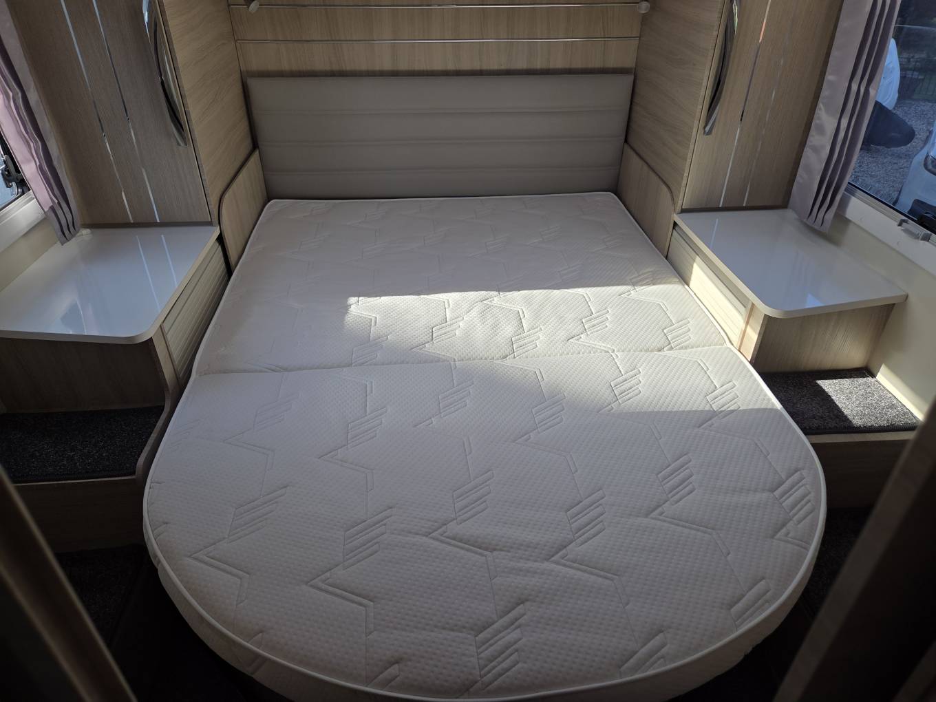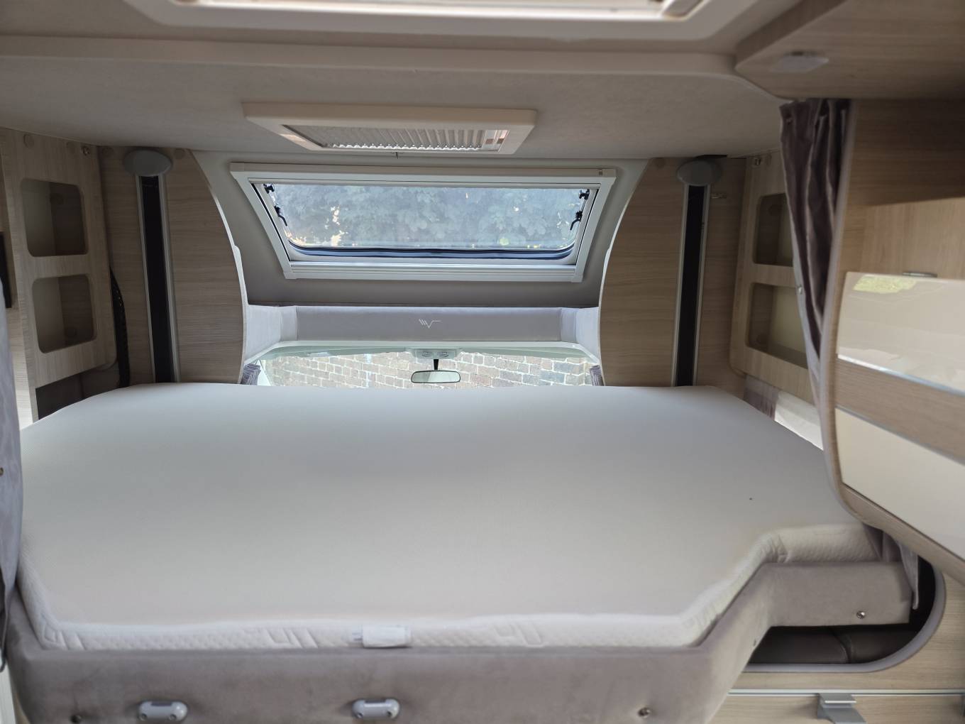 This motorhome features a well-thought-out layout, with a spacious rear bedroom that includes a comfortable and height adjustable double ‘island’ bed. The living area can also be transformed into an additional sleeping space, making it suitable for couples or small families.