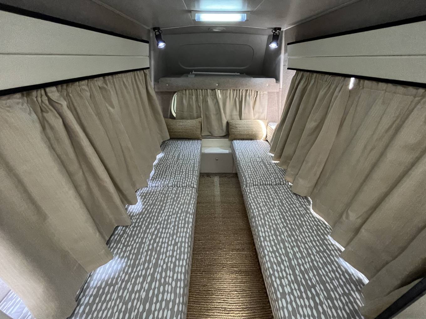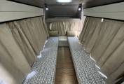 The camper includes a leisure battery system, 12V lighting, mains hook-up, making it suitable for both campsites and short off-grid stays. The insulation is modest but adequate for three-season travel.