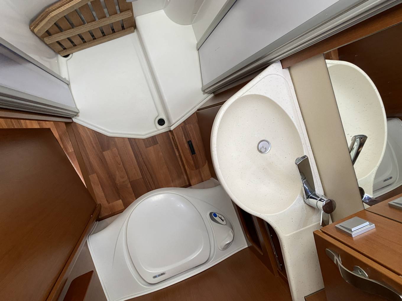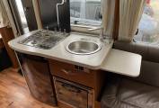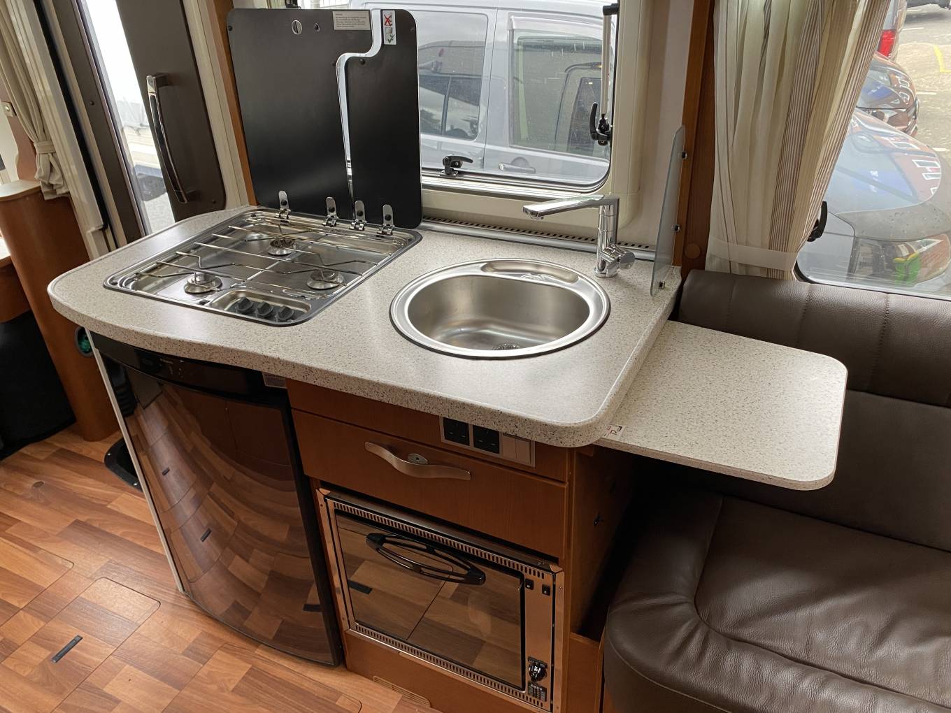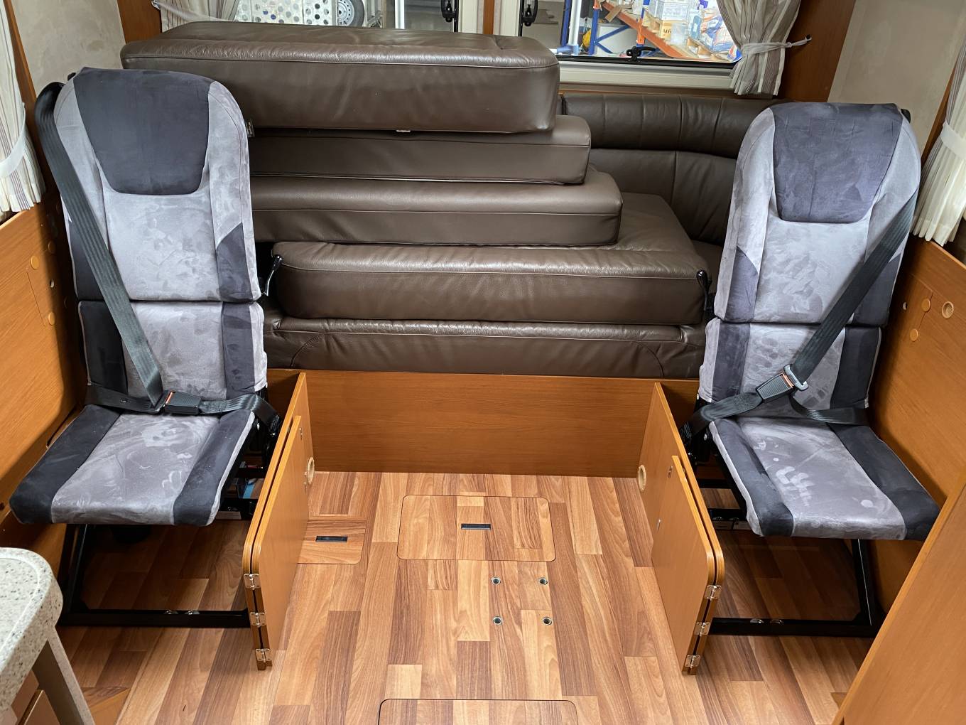 Inside, the layout is both practical and versatile: front dinette with drop-down bed, midships kitchen and washroom, and the spacious rear lounge that converts into a large double (or single + smaller double if preferred).