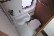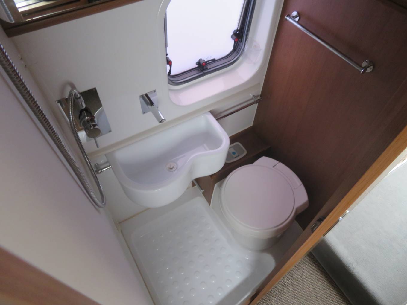 The bathroom on the opposite side has a Thetford flush toilet, flip down wash hand basin and a full length shower.