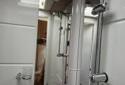Good sized washroom in the middle of the Motorhome - the shower can be completely enclosed from the Loo and sink with bi-folding doors.