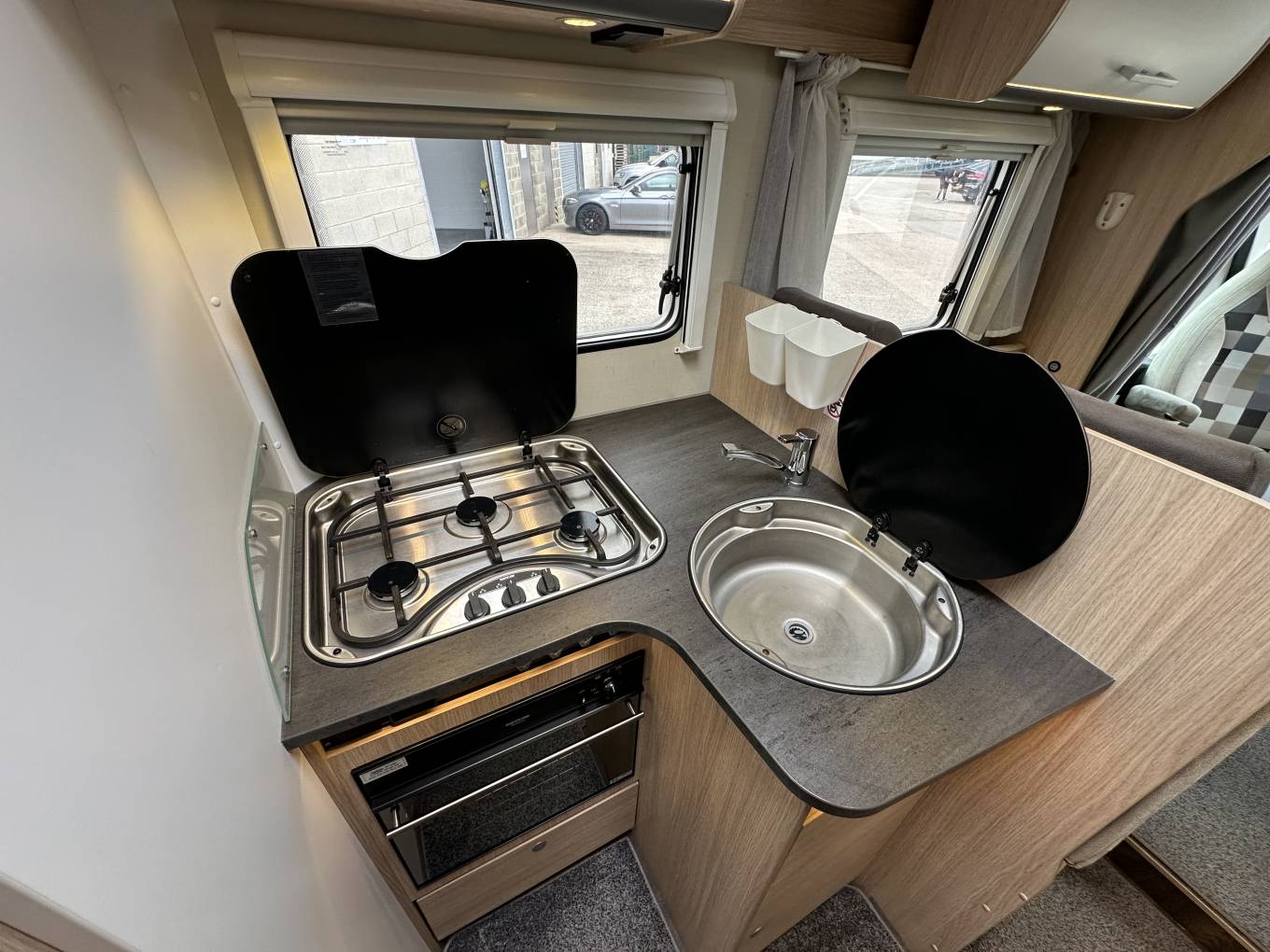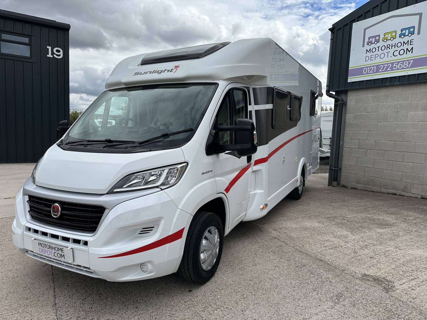 This really is an outstanding example of a coach-built Sunlight T69l made by Dethleffs in Germany. This 4 berth, 4 seatbelt model is plated at 3500kgs so can be driven by all and it features a large island bed to the rear with a double that comes down from the ceiling to the front. With a well equipped kitchen with a large fridge freezer, oven and 3 burner hob plus a bathroom with separate shower that can be closed off to make an en suite. An outstanding layout at 7.4 metres long. Based on the excellent Fiat Ducato cab with the 2.3 multi-jet diesel engine with a six speed manual gearbox, cab air-con and cruise control. 34,741miles from new and to include a new habitation test. This example also includes an Thule Omnistor awning, 4 cycle rack, and a rear view reversing camera.