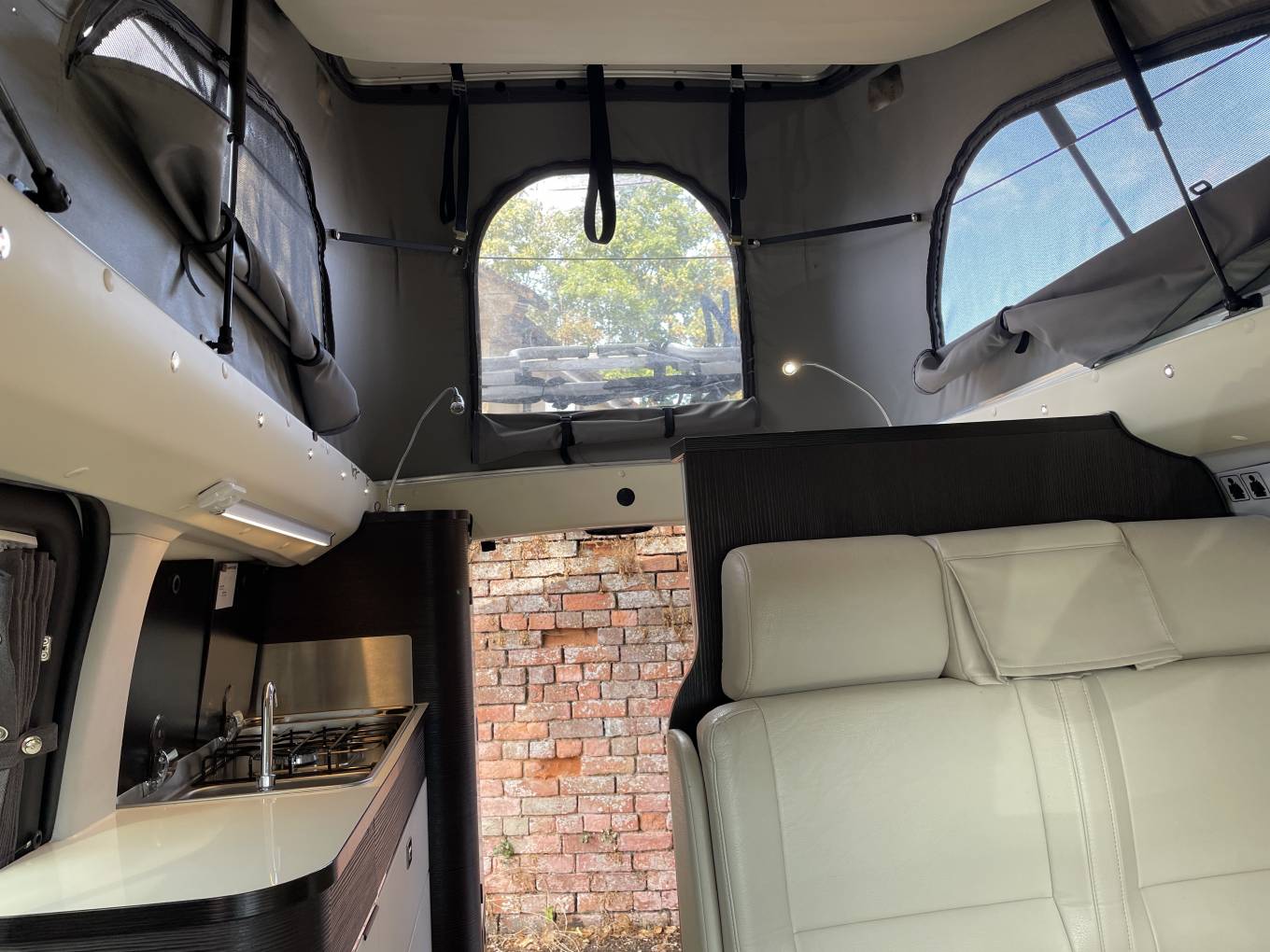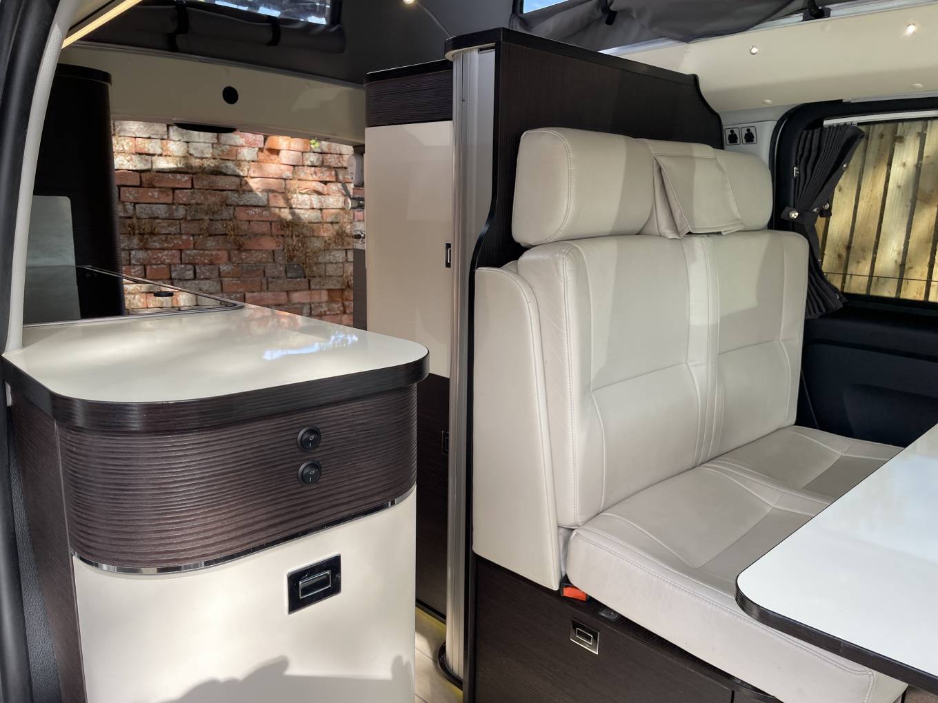 The driver and passenger “Captains” seats swivel into the four person seating area, which in minutes can be converted into a very comfortable sleeping area with a double bed. The pop-up roof not only affords more head room (2.20m max) – it also comes into play as a seriously cosy double bedroom. Sleek and contemporary interiors won’t leave you wanting for anything, day or night this is a motorhome that gives you complete independence to get out there and see the places you want to see, whether it’s on a city break or time in the wilds.