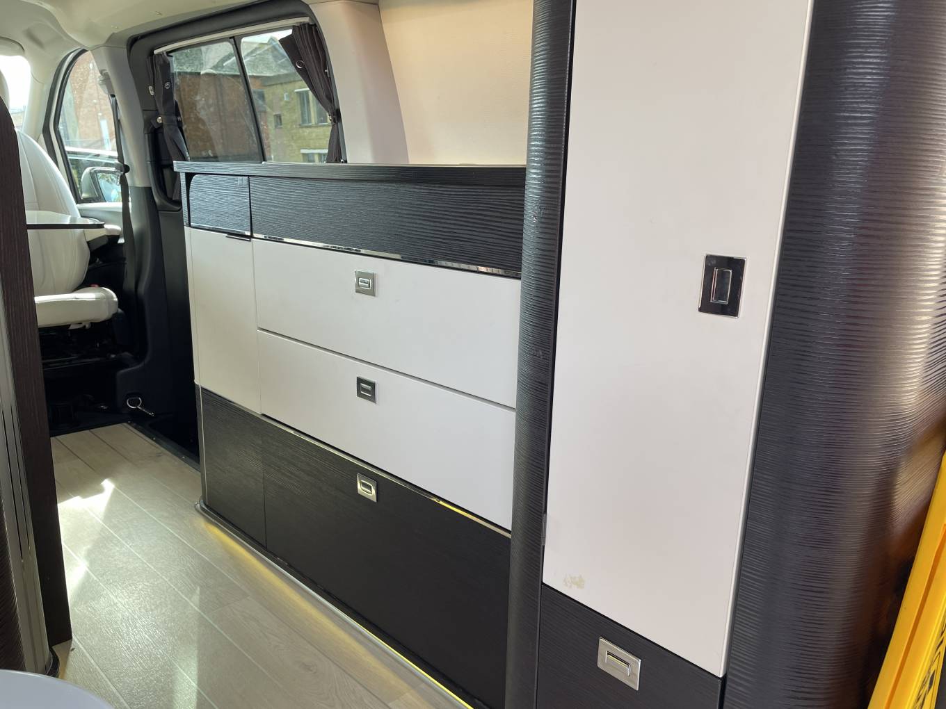 The Jule Verne model is a superb blend of style, convenience and comfort, and it’s fully-equipped for your next adventure. The integrated kitchen area has a two ring hob, refrigerator and generous storage for your provisions. To the rear of the campervan there is a separate wet area with a shower, sink and toilet.