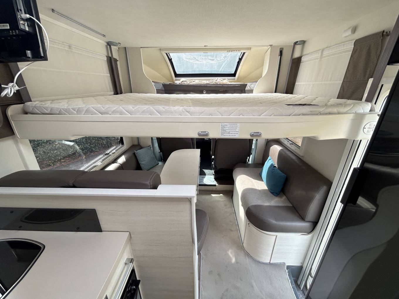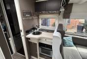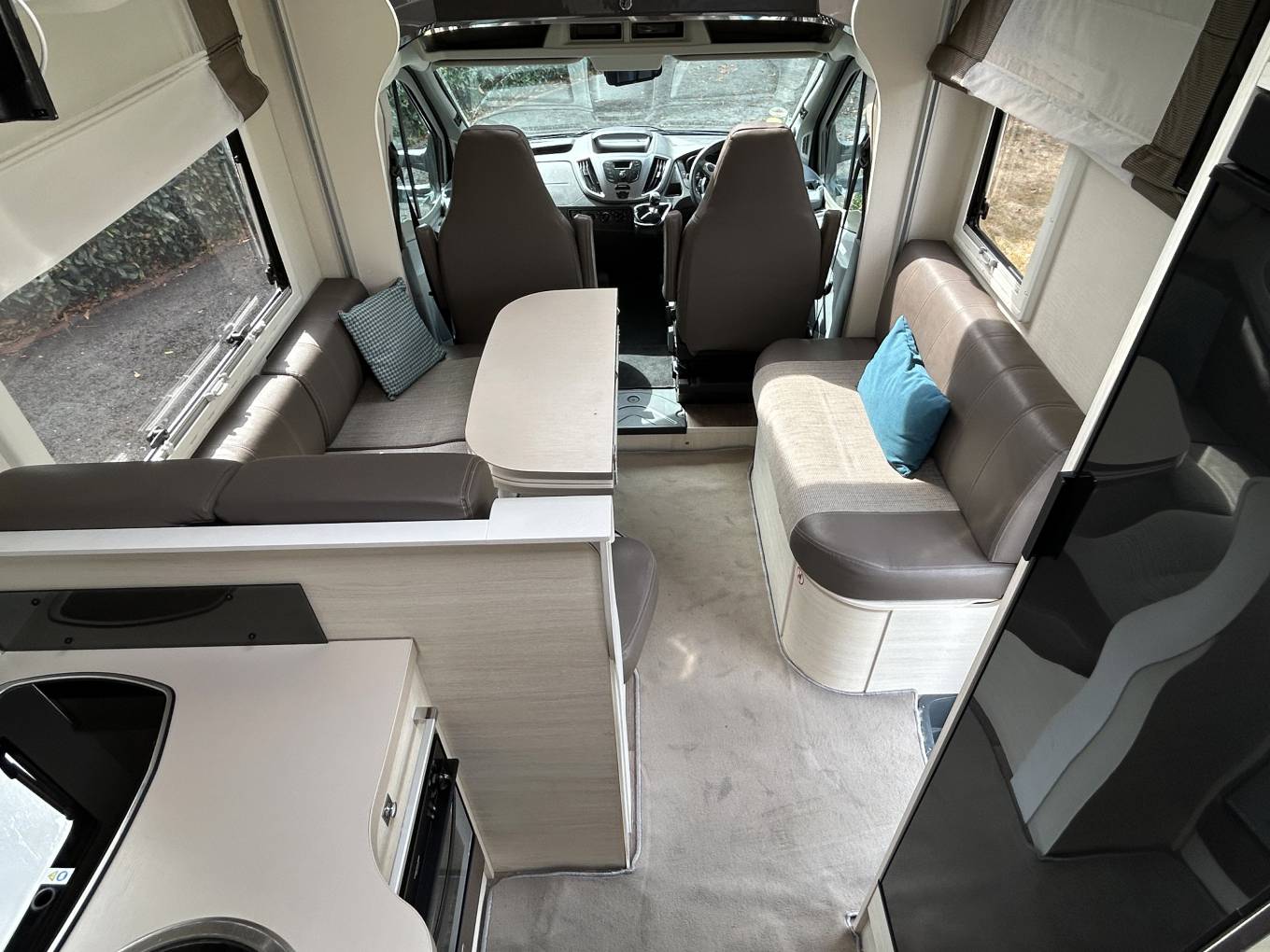 This model is a true 4 berth with 4 seatbelts, making it ideal for families or couples who want both comfort and flexibility. The heart of the motorhome is the large front lounge, where the two swivel cab seats join the side seating to create a bright and welcoming social space – perfect for relaxing, dining, or entertaining.