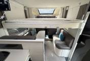At night, the electric drop-down double bed lowers effortlessly over the lounge, giving you the comfort of a fixed bed but without sacrificing valuable daytime living space. A second double can also be made up from the lounge seating if required, making this a versatile option for couples or families.