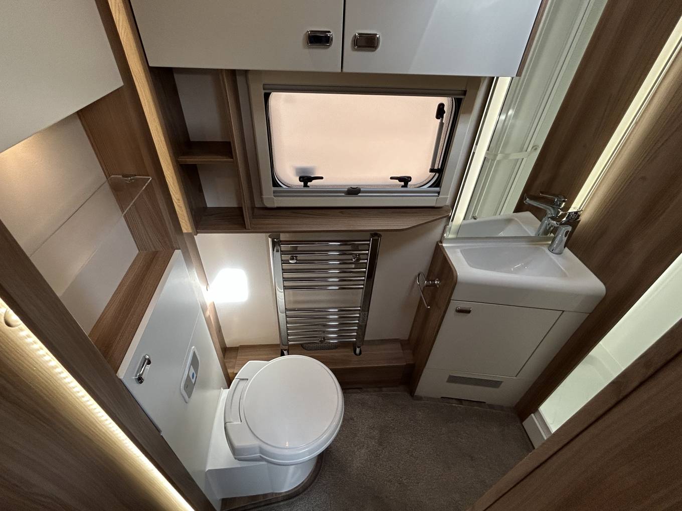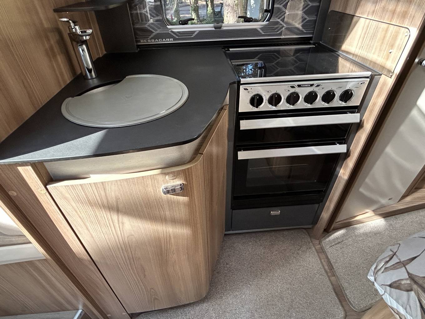 On the road, the Bessacarr 584 is equally impressive. The Euro 6B ULEZ compliant engine is efficient and smooth to drive, with cab air conditioning for comfort, cruise control and a reversing camera for easy manoeuvring. Alde heating keeps the interior cosy all year round, while the solar panel and wind-out awning extend your freedom to enjoy off-grid adventures. A Sargent tracker and alarm system add extra reassurance, and a free TV/DVD is included for your entertainment.