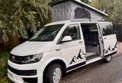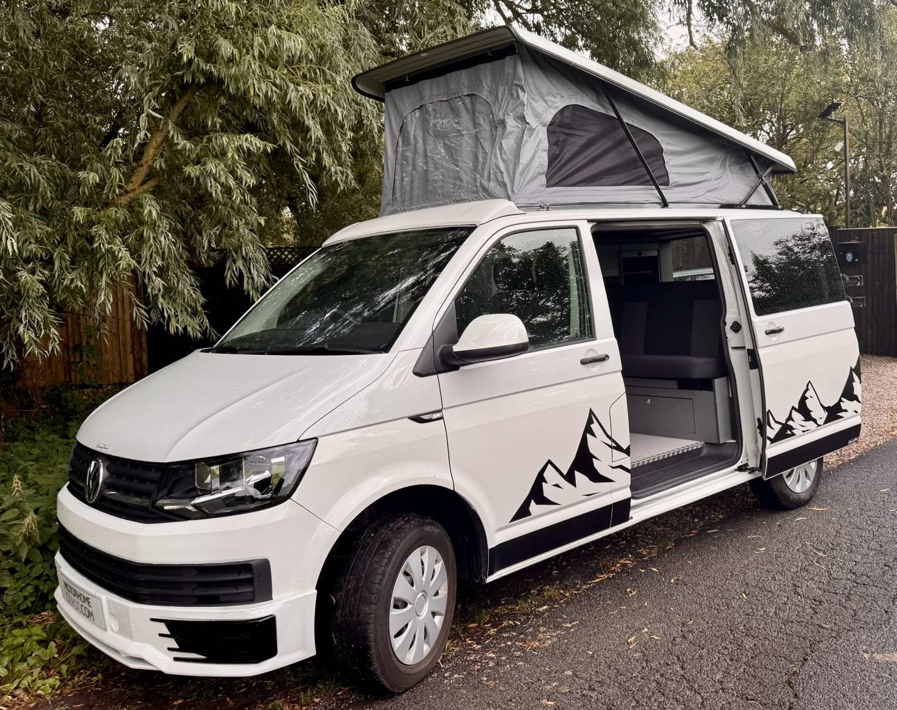 This 2019, Volkswagen, T6 Startline, brand new conversion for current owner. SWB model, with white body colour and Mountain Range graphics kit with Compass Rose decal.