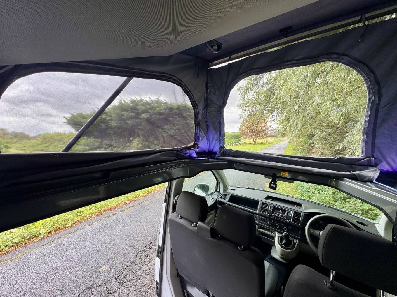 Additional features for this VW conversion include rock and roll flat bed, Webasto diesel heating, water tank, plug sockets (euro but owner will change), twin gas hob, sink, storage cupboards, rear cup holder, blackout curtains, bike rack, stowable table. 150w inverter (plug in low wattage items).