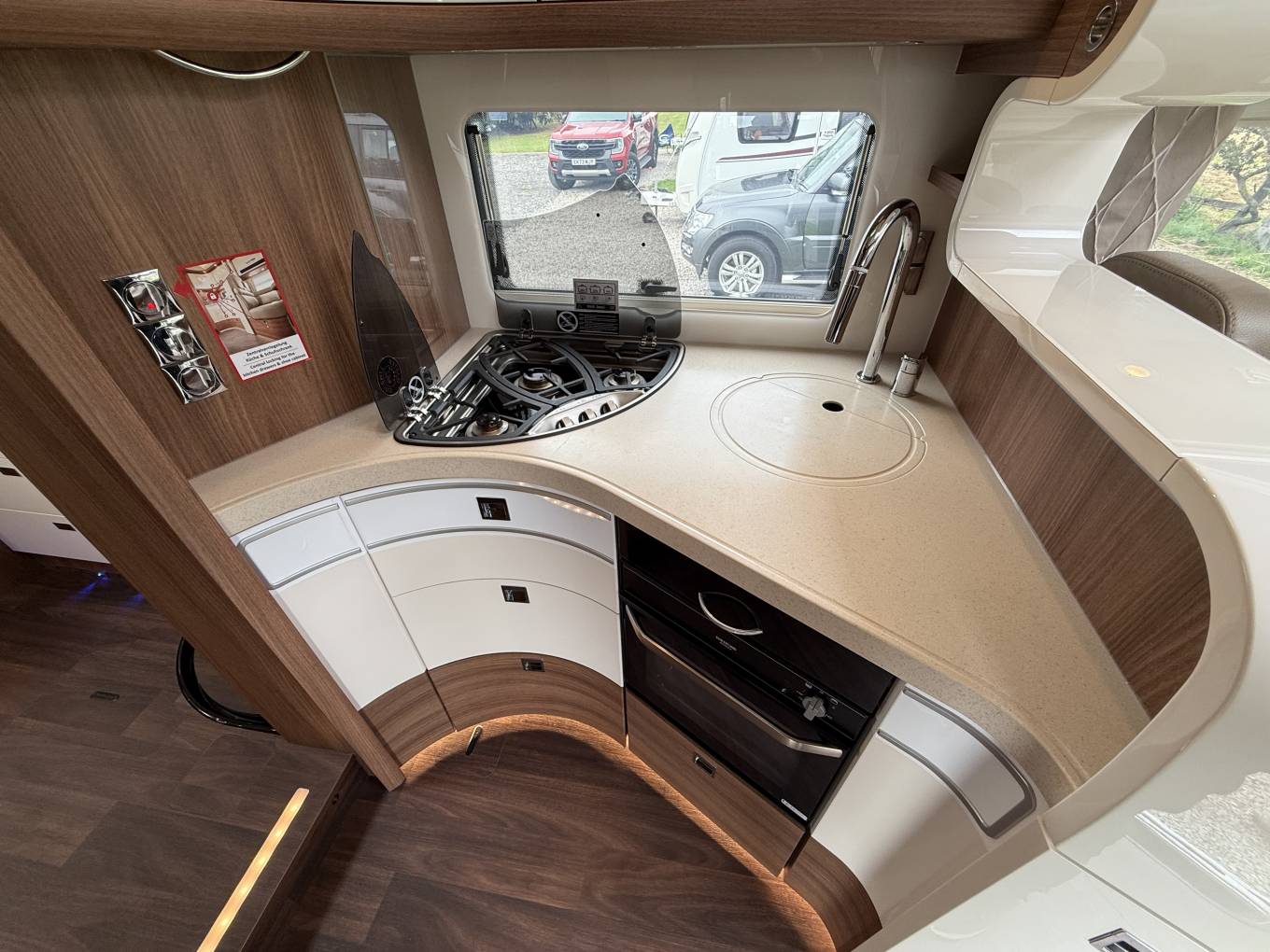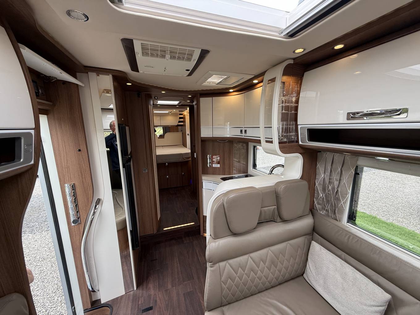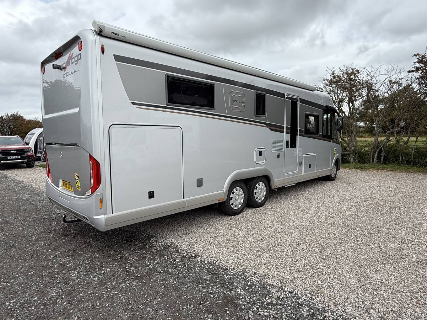 Carthago Chic E Line 64 XL QB MB, High Quallity, Luxury Motorhome in Immaculate Condition. This motorhome is built on the Mercedes chassis with automatic gearbox and 170bhp engine with full service and Habitation history. It is built to the hightest standards with a beautifully designed interior and has many additional useful features. At the rear is the bedroom with island bed and under this is a large garage. Next to this is the bathroom with separate shower compartment. In the centre there is a well equipped kitchen and at the front there is a spacious lounge with plenty of seating options. It comes with Cab and Habitation Air Con, Cruise Control, Rear Camera, DAB Radio, 2 x TVs, Satellite System, 2 x Solar Panels, 2 x Lithium Batteries, Auto Self Leveling, Gas Low System, Tracking, Inverter, Wi Fi, Outside Shower and BBQ Point. A truly stunning luxury motorhome available for viewing by appointment. Call for more photos, videos and full spec sheet.