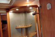 Beautifully presented washroom with Thetford toilet, including sliding wall feature, creating a lovely sized wetroom/shower room