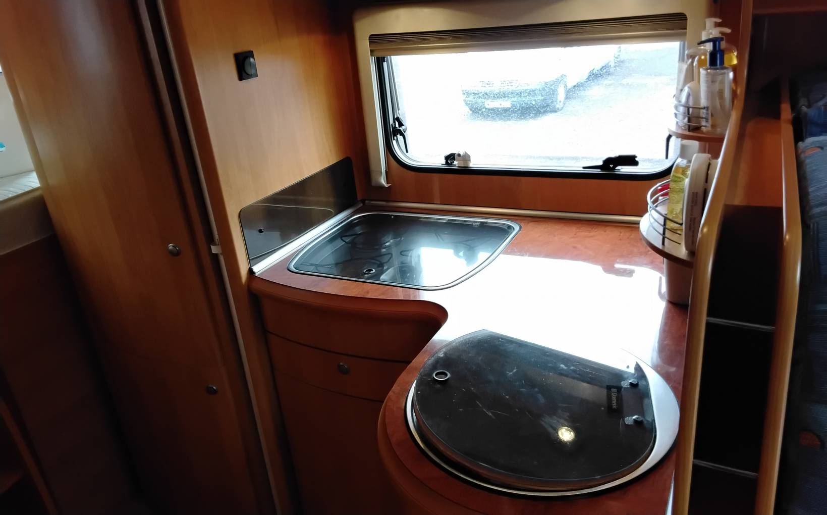 Over cab bed gives lots of light and airy space, with large windows, reading lights and large storage pockets, easy to access via ladder